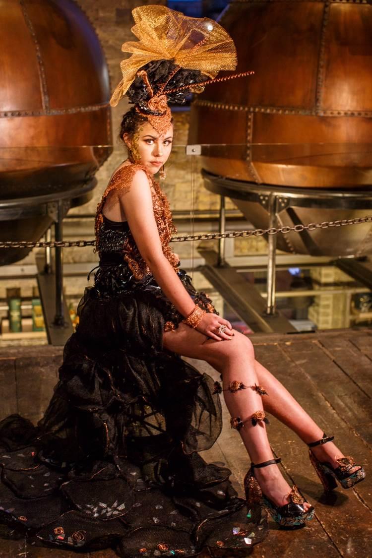 Celtic Electric created by Blathnaid Connolly, Sarah Bennett and model Aoife Hyland Conlan, is made from copper wire, builders netting, video tape and After Eight wrappers.
