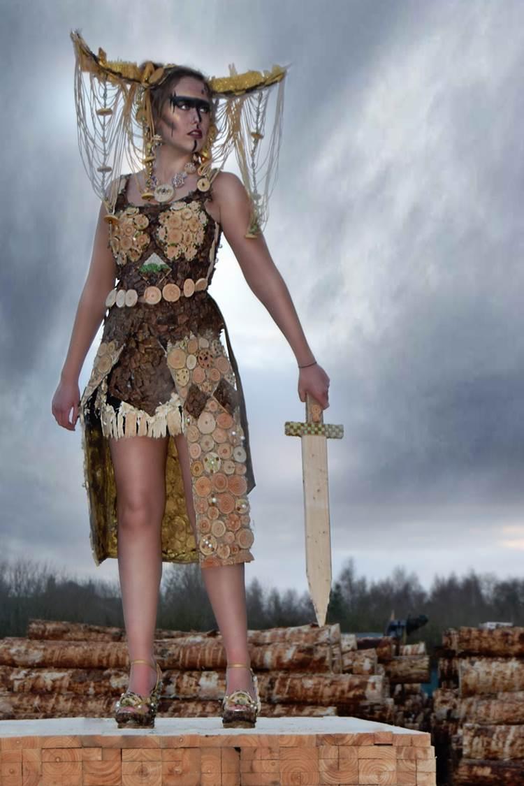 Vior Viking is made from wood that was carved, cut, shaved, sanded or turned to sawdust, by Ellen Delaney and Alyssa McCann (model).