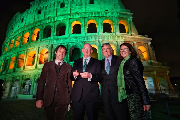 The minister’s busy schedule included attending the ‘Greening’ of the famous Colosseum in Rome – as part of Tourism Ireland’s Global Greening initiative to celebrate the island of Ireland and St Patrick