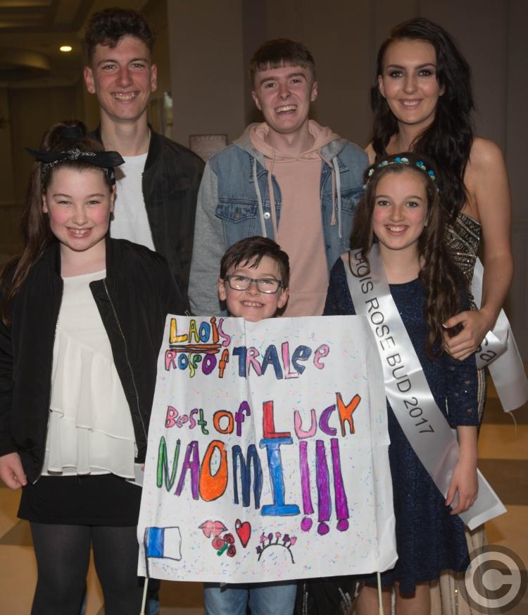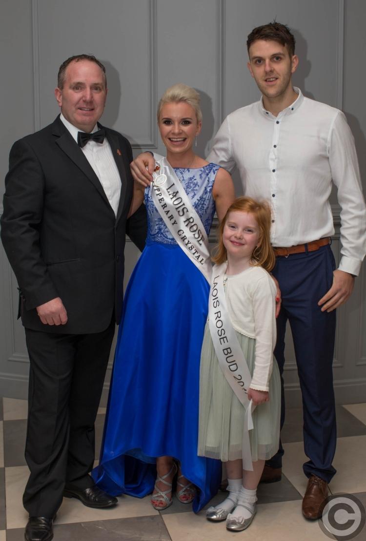 In all 17 Laois women took to the stage at the fun filled glamorous night, each accompanied by adorable little Laois Rosebuds in a first for the event. They were cheered by a packed room of supporters with bright banners.