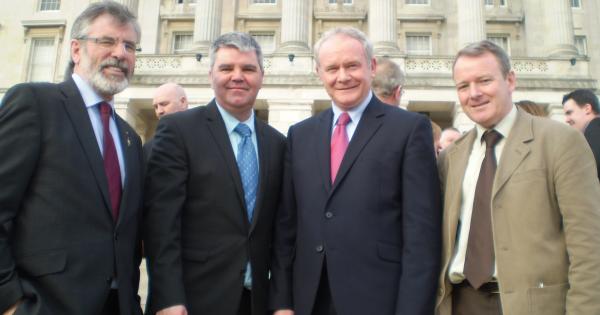 Laois SF TD Brian Stanley at Stormont with Gerry Adams, Cathal Boylan MLA and the late Martin McGuinness.