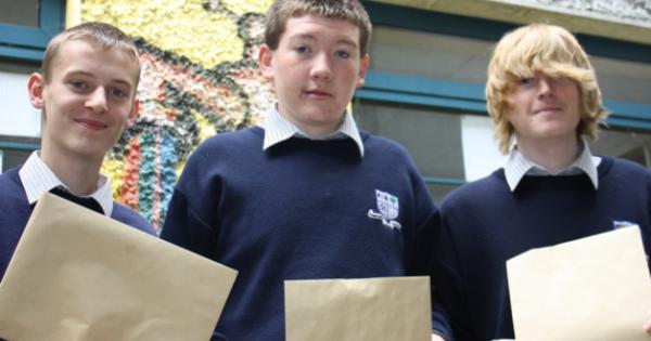 Cathal Grennan, Aidan Moore and Andrew Guerin with their Junior Cert results at Mountmellick Community School.