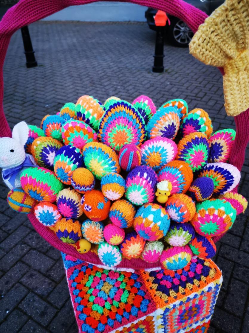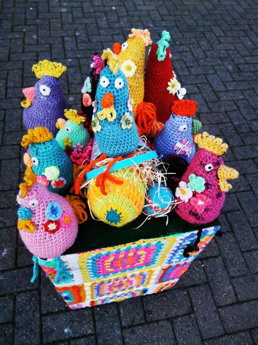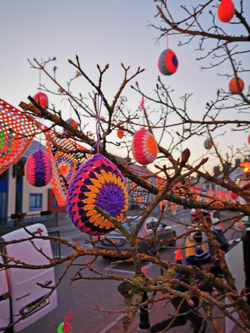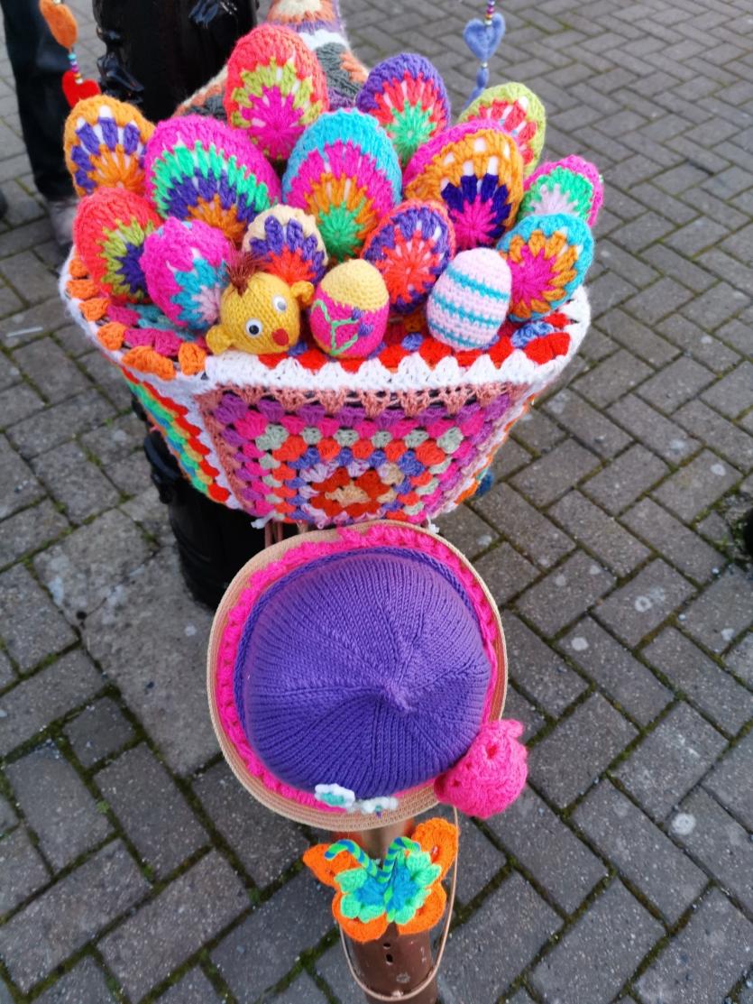 The crafty chicks of Yarn Bombing Mountmellick have outdone themselves again in yarnbombing their town, to add cheer this quiet Easter Sunday April 4.