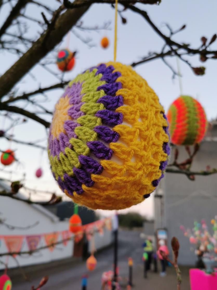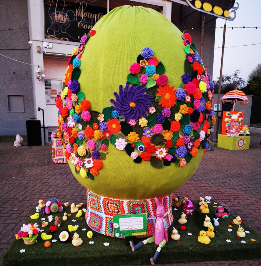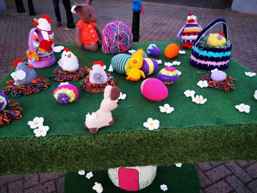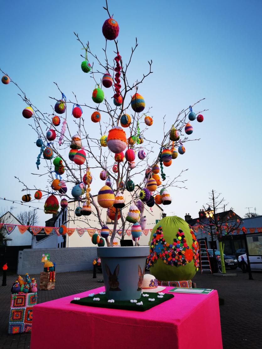 The crafty chicks of Yarn Bombing Mountmellick have outdone themselves again in yarnbombing their town, to add cheer this quiet Easter Sunday April 4.