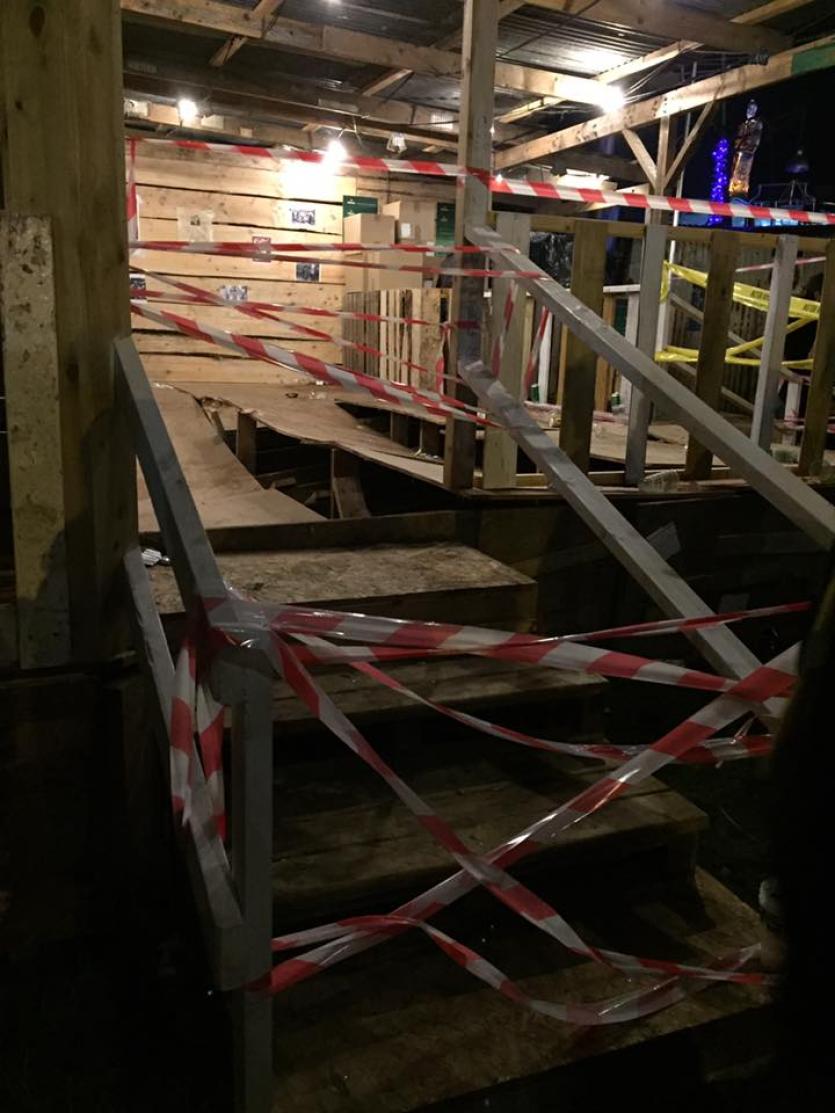 The sheer volume of people at the wooden cabin style venue caused the floor to slowly crack and cave in.