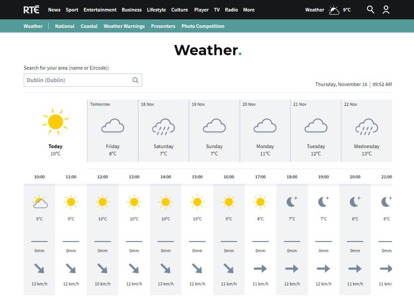 Offering a whole new range of features, RTÉ.ie/weather will ensure to provide the latest, most up-to-date weather forecast across mobile, desktop and tablet. www.rte.ie/weather