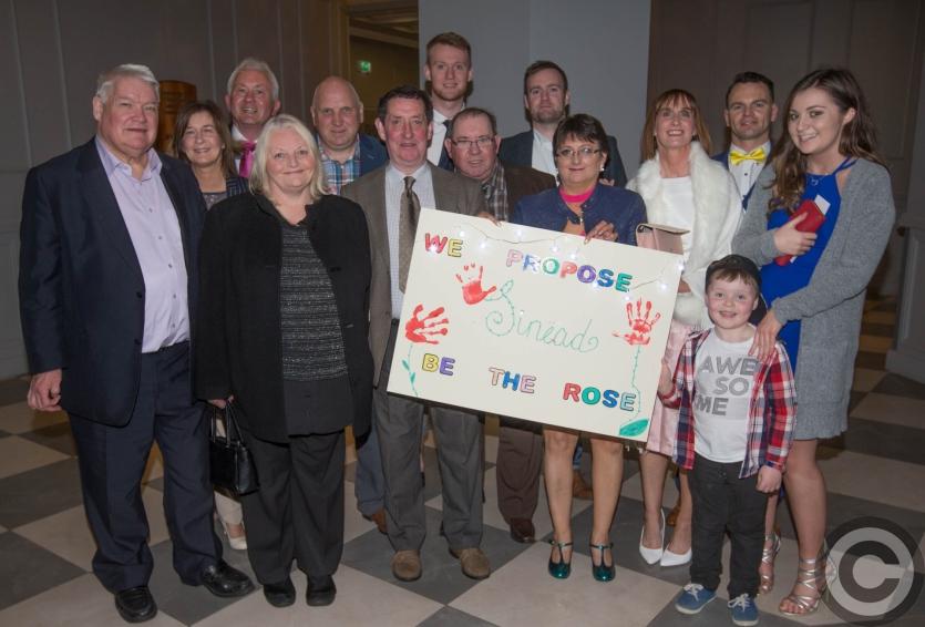 In all 17 Laois women took to the stage at the fun filled glamorous night, each accompanied by adorable little Laois Rosebuds in a first for the event. They were cheered by a packed room of supporters with bright banners.