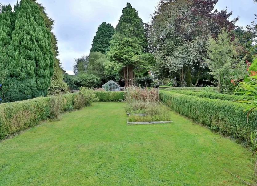"The delightful drawing room is dual aspect and enjoys an original marble fireplace, wide plank antique floorboards and shuttered windows. Off the drawing room is a beautiful elevated sunroom which offers a splendid picture window view over what is perhaps one of the finest walled gardens in the county.