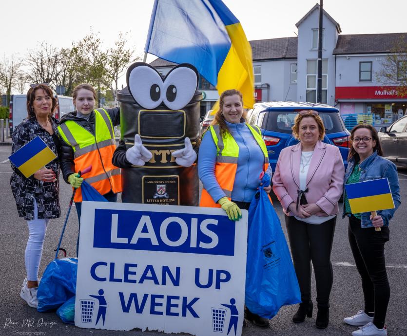 Ukrainian refugees living in Laois are so grateful to Laois Integration Network for opening up a ‘Zero Cost Shop’ in Portlaoise town that they came out in force to help during this week’s ‘Clean up Week’ in Laois.
