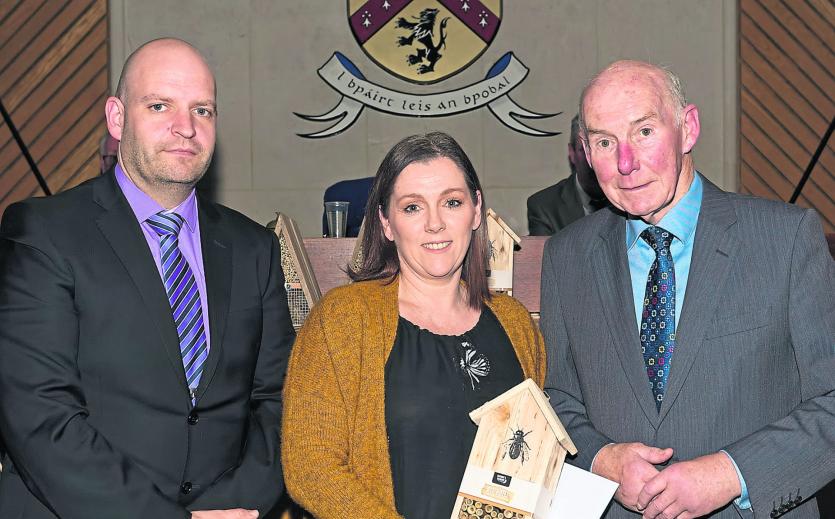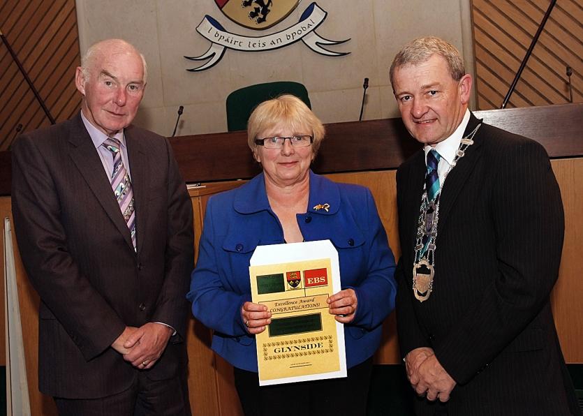 ILEE 43 Portlaoise Tidy Estates awards presentations in County. Patricia Keenan receives the award for Glenside from Gerry Lodge, Chiarman of Portlaosie Tidy Towns Committee and Matthew Keegan, Mayor of Portlaoise.