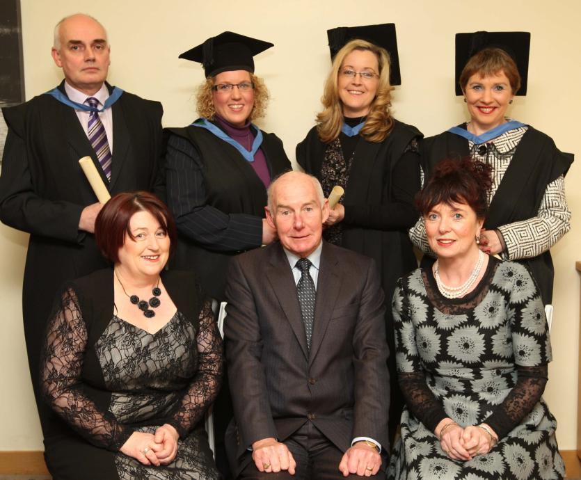 With their certificates are Willie Marum, Marie Mulligan, Nita Powell and Veronica Dowling (back) with in front: Margaret Morrin, Director Laois Third Level, Portarlington; Jerry Lodge MCC, chairman Laois Third Level and Kate Quinlan, Tutor at the Laois Third Level Presentation of NUI Maynooth Certificates at the Maldron Hotel, Portlaoise. Picture: Alf Harvey.