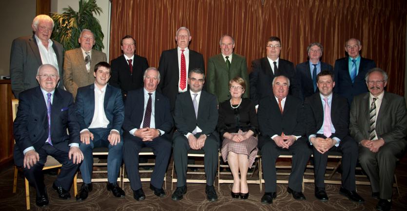 Fianna Fail Local and European election candidates with Darragh Calleary T.D. at the launch of their campaign at the Killeshin Hotel Portlaoise. No 1. Back row L. to R. Joe Digan, Cllr. Seamus McDonald, Ger Phelan, Cllr. Paddy Bracken, John Joe Fennelly, Paschal McEvoy, Michael G. Phelan, Cllr. Jerry Lodge, Front Row L. to R. Pat the Cope Gallagher M.E.P. David Ryan, Dick Miller, Darragh Calleary T.D. Cllr. Catherine Fitzgerald, Willie Murphy, Senator Thomas Byrne and Cllr. Padraig Fleming.