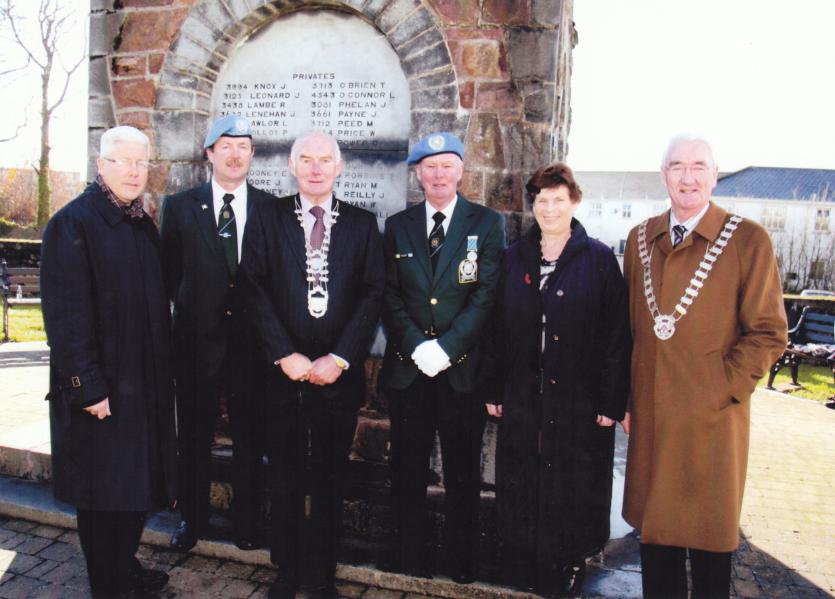 Fr Paul Fitzpatrick, Cllr Jerry Lodge, Cathaoirleach of Portlaoise Town Council, Bryan Kiernan, Kathleen O'Brien, Chairwoman of the War Memorial Committee and Cllr James Deegan, Cathaoirleach of Laois County Council.