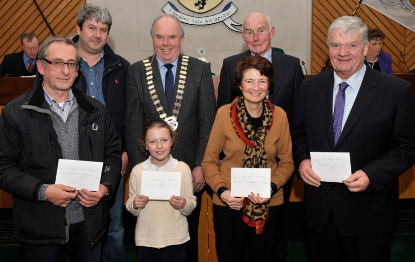 ILEE 43 Portlaoise Tidy Estates awards presentations in County. Winners in various categories are pictured with Matthew Keegan, Mayor of Portlaoise and Gerry Lodge Chairman of Portlaoise Tidy Towns committee.