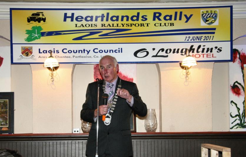 Cathaoirleac of Portlaoise Town Council Jerry Lodge addressing the launch in O'Loughlins Hotel of the Laois Rallysport Club's Heartlands Stages Rally supported by main sponsors Laois County Council and O'Loughlins Hotel Portlaoise, Photo:Tim Keane.