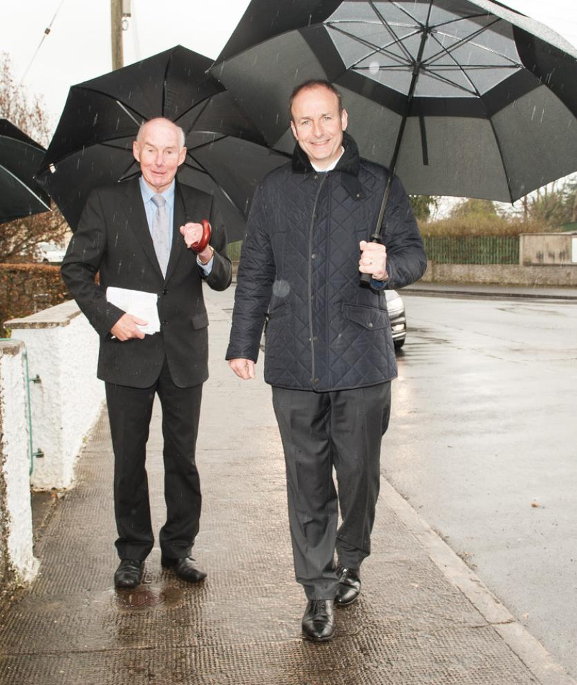 Michael Martin and Gerry Lodge at Portlaoise County Laois. Fianna Fail leader Micheal Martin with Cllr. Gerry Lodge at St. Brigids Place Portlaoise. Photo Denis Byrne.