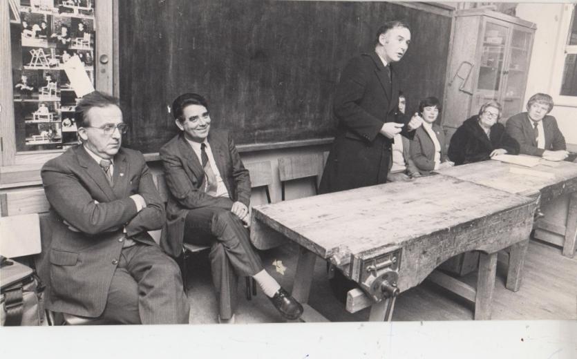 Jerry Lodge, Chairman of Laois VEC addressing a meeting in Mountmellick Vocational School. On the left is Leon De Barra, Principal and Ronan Rice, CEO of Laois VEC.