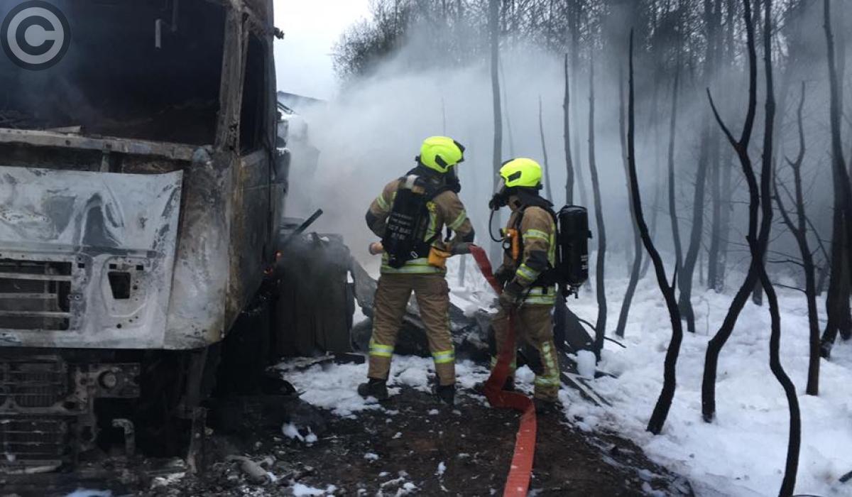The Laois County Fire and Rescue Service and Kildare Fire Service responded to the truck blaze with Gardaí around 7pm on Saturday. The service said the extensive scale of the blaze forced the closure of the busy road.