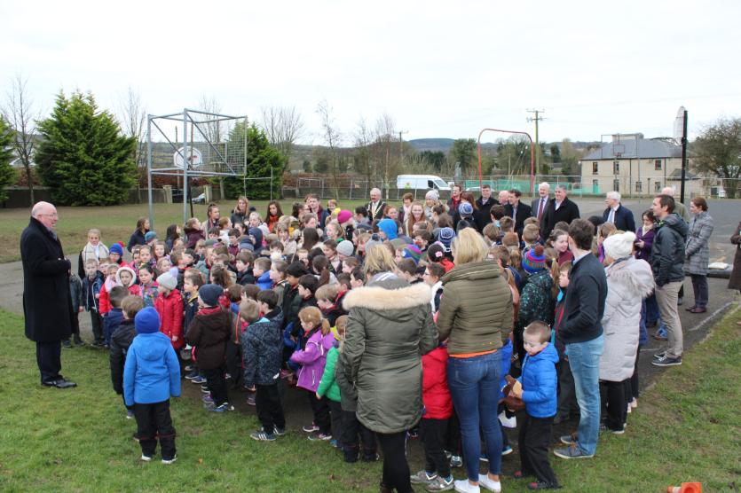 Laois TD and Minister for Justice and Equality, Charlie Flanagan, came to Timahoe last Monday February 5 for the turning of the sod for a school extension at Scoil Mhuire Fatima.