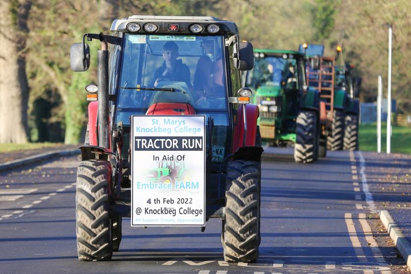 This year's event which took place early on Friday January 4 raised funds for Embrace FARM. A total of seventeen tractors converged on the scenic college grounds from Laois, Carlow and Kildare in support of the charity.
