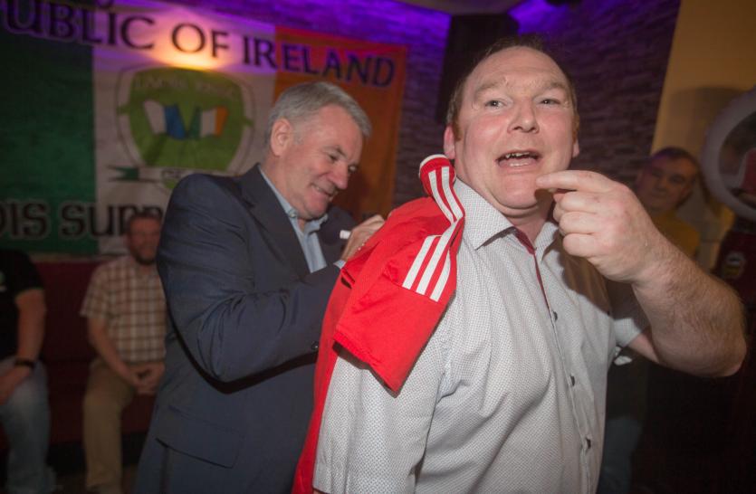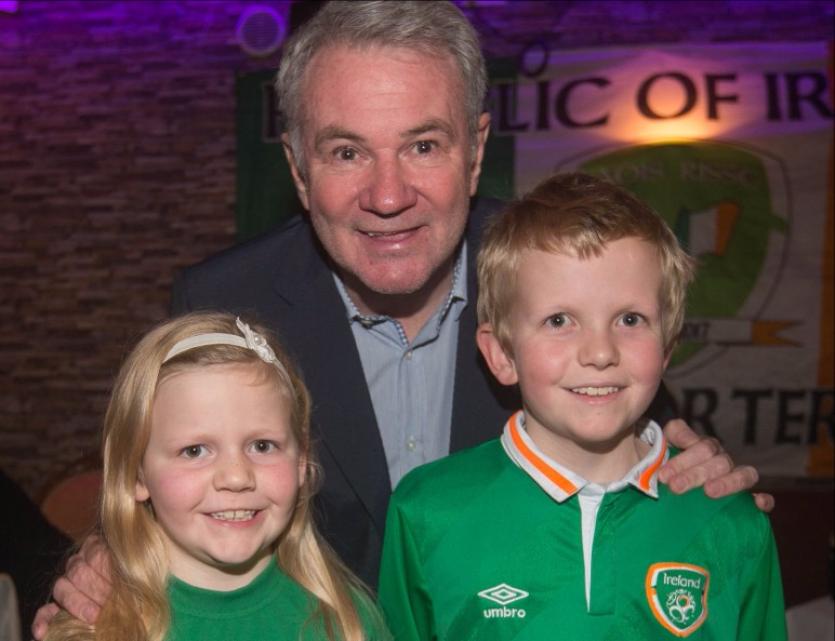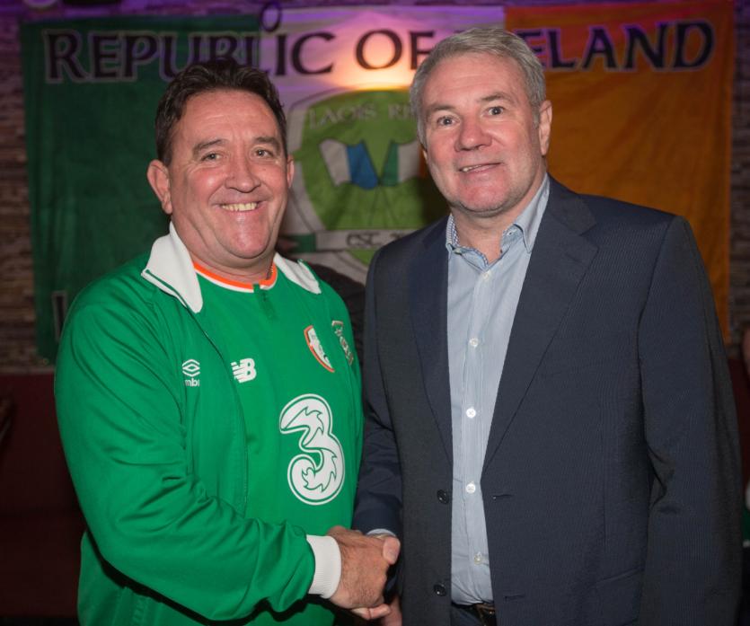 Houghton was welcomed to De Brúns at Hume's by the Laois Republic of Ireland Soccer Supporters Club, and he drew a large crowd to the venue, while also lending his support to the campaign to save Portlaoise hospital.
