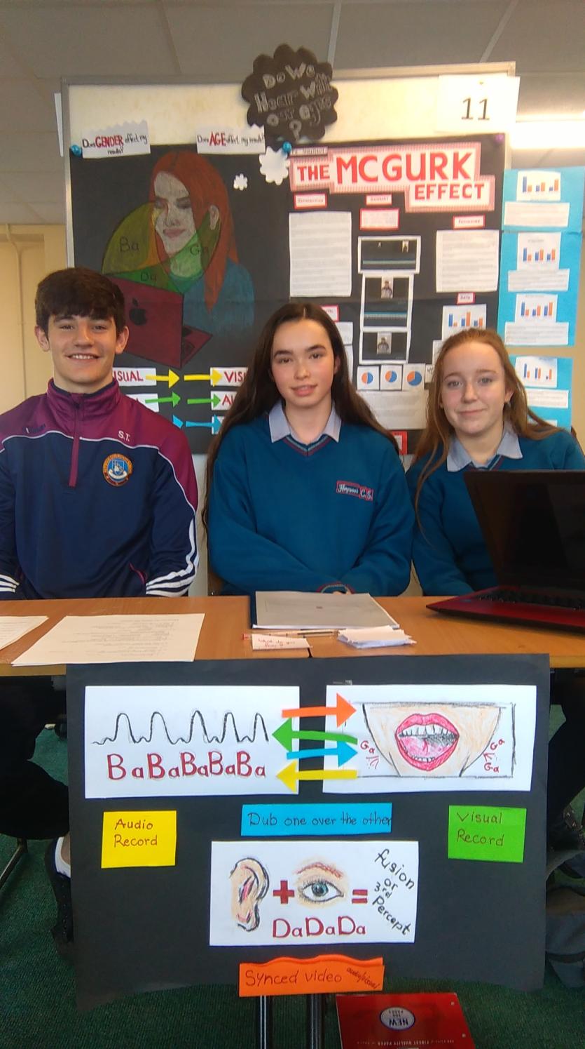 Highly commended were Katie Clerkin and Emma Foley with "The effect of music genres on different genders and age groups".