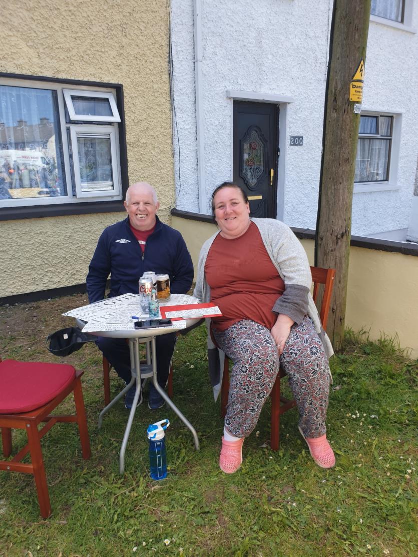 Residents in St Brigid's Place in Portlaoise have taken to their front gardens for outdoor Bingo.