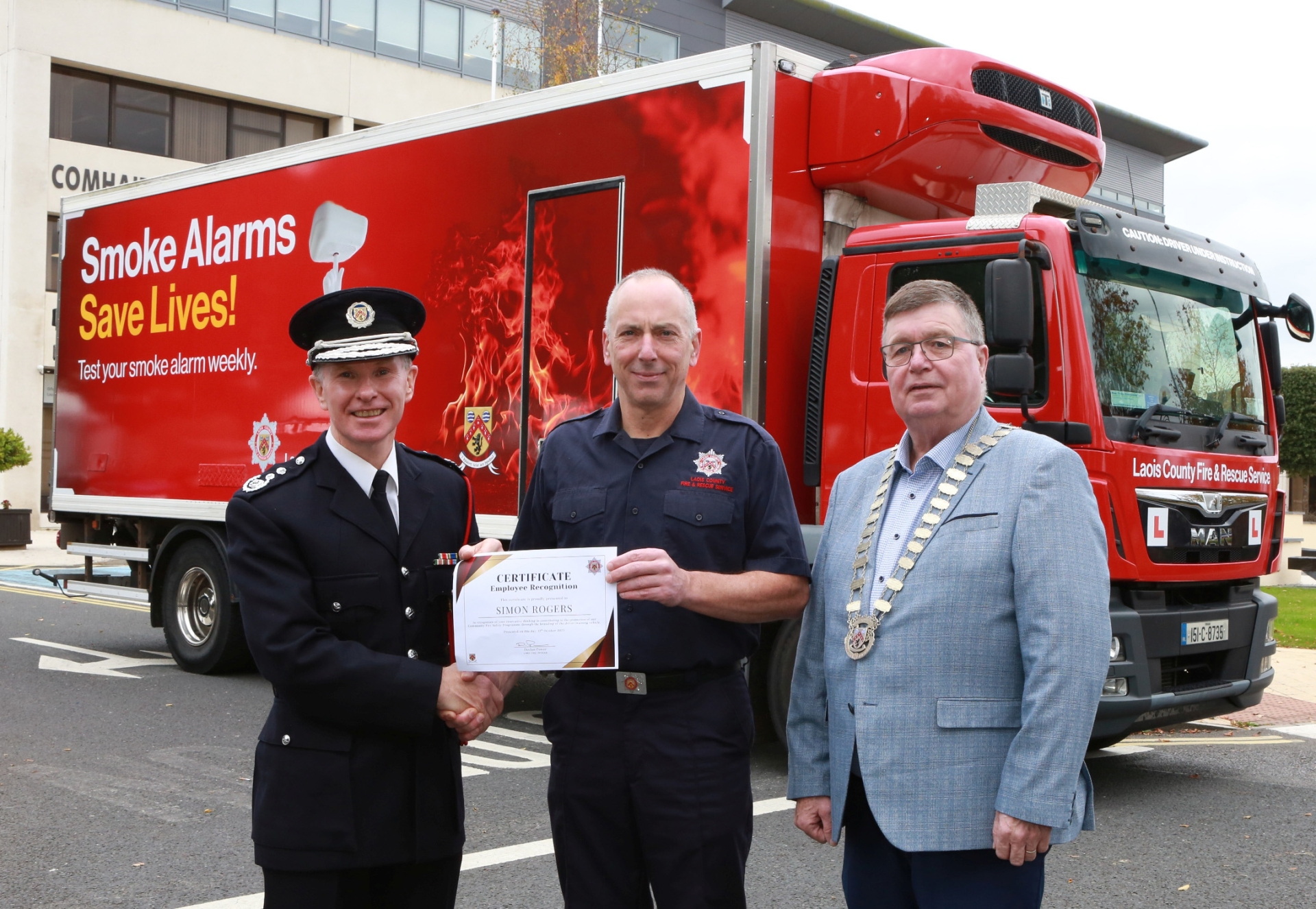 The fire service, along-side Laois County Council's Deputy Chief Executive Simon Walton and Leas Cathaoirleach Paschal McEvoy launched their recently revamped training vehicle on Monday.