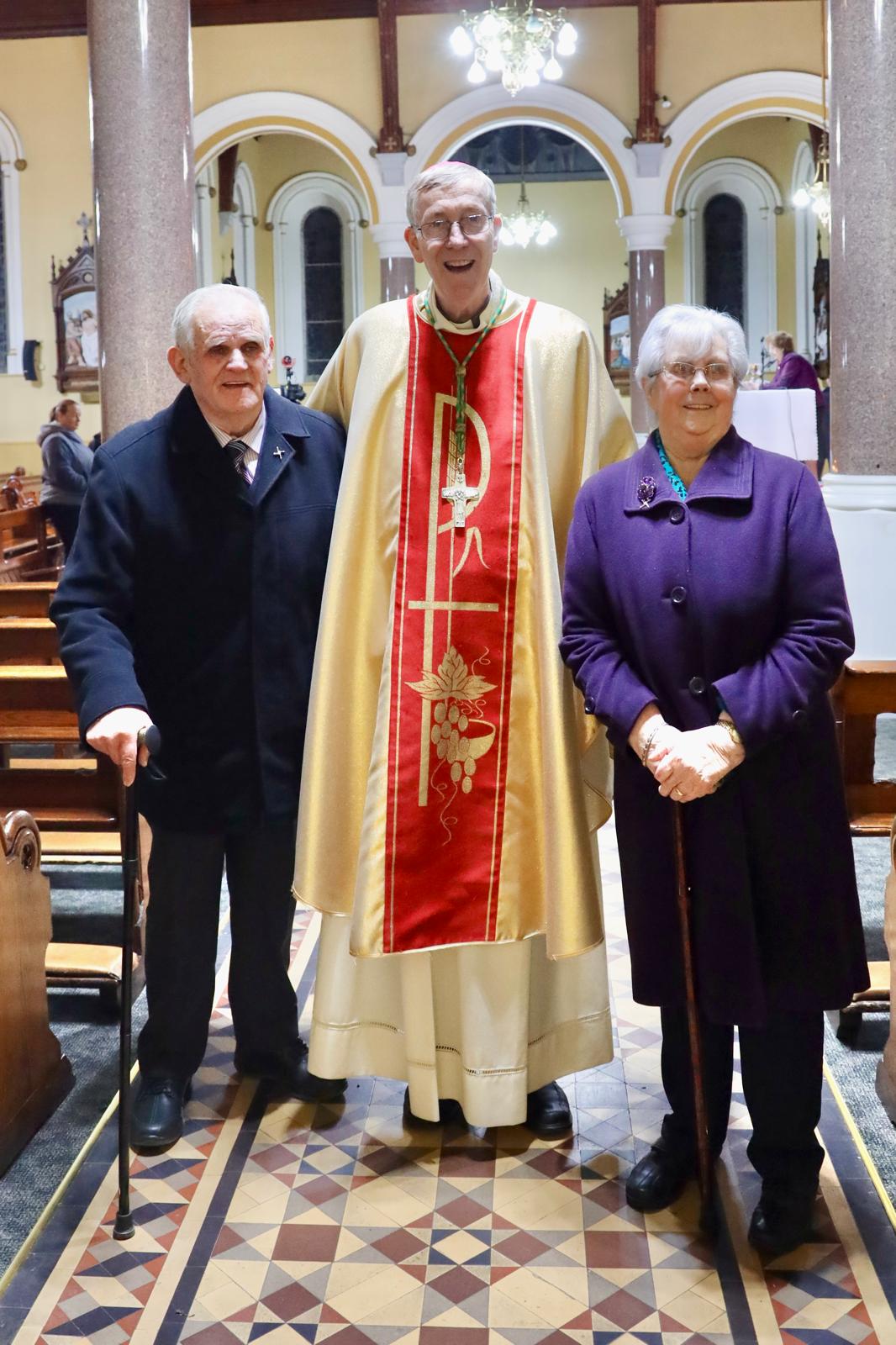Pictured: Joe Clooney, Bishop Nulty and Liz Clooney