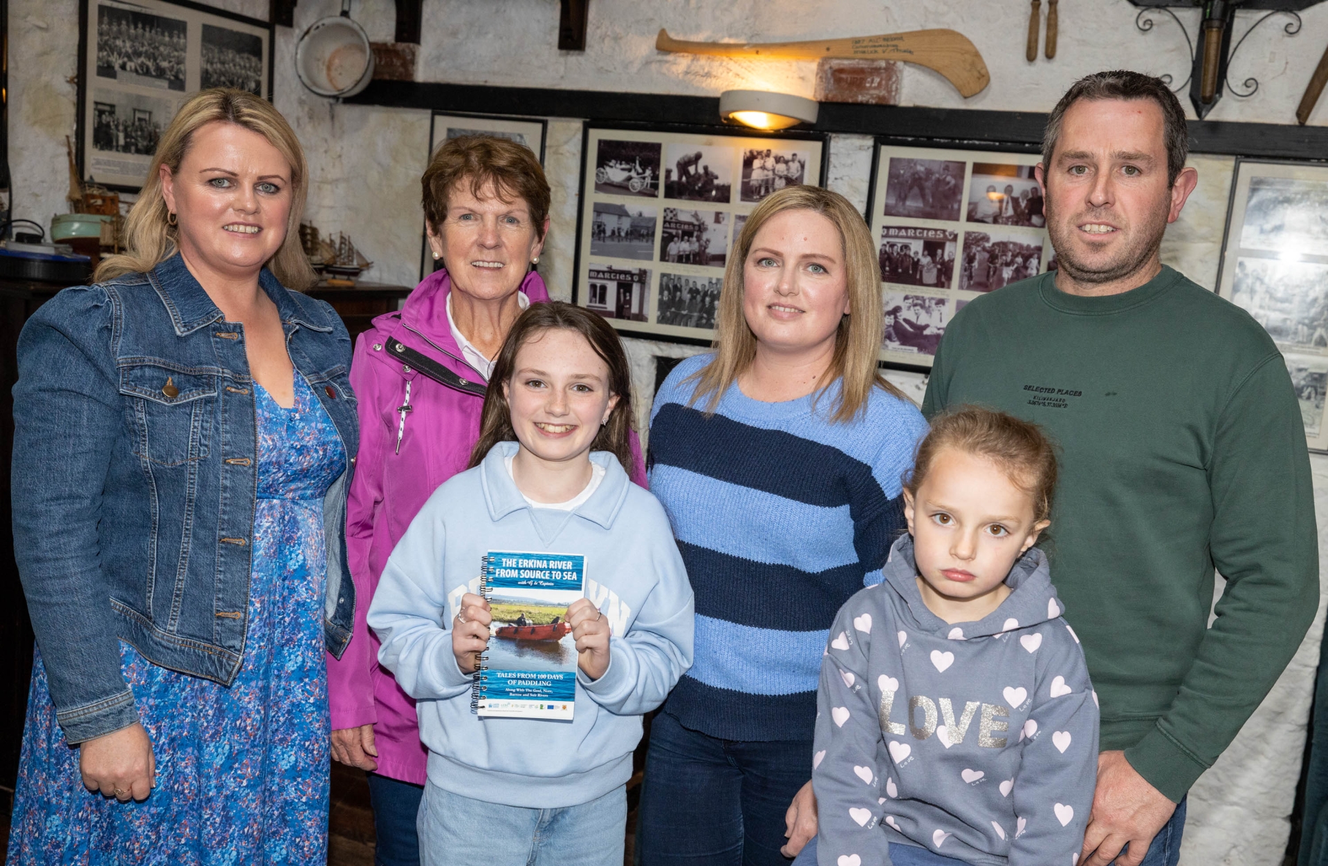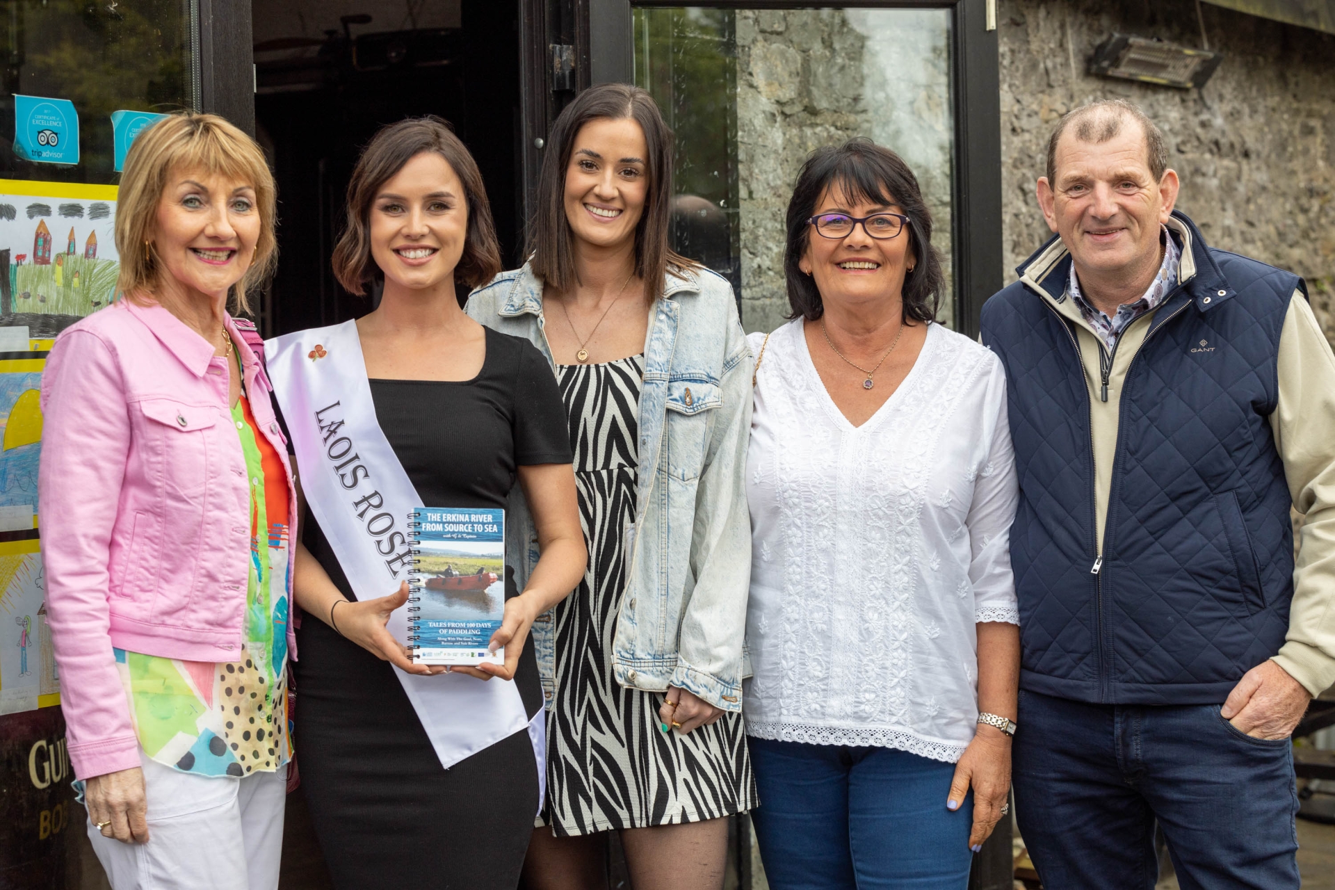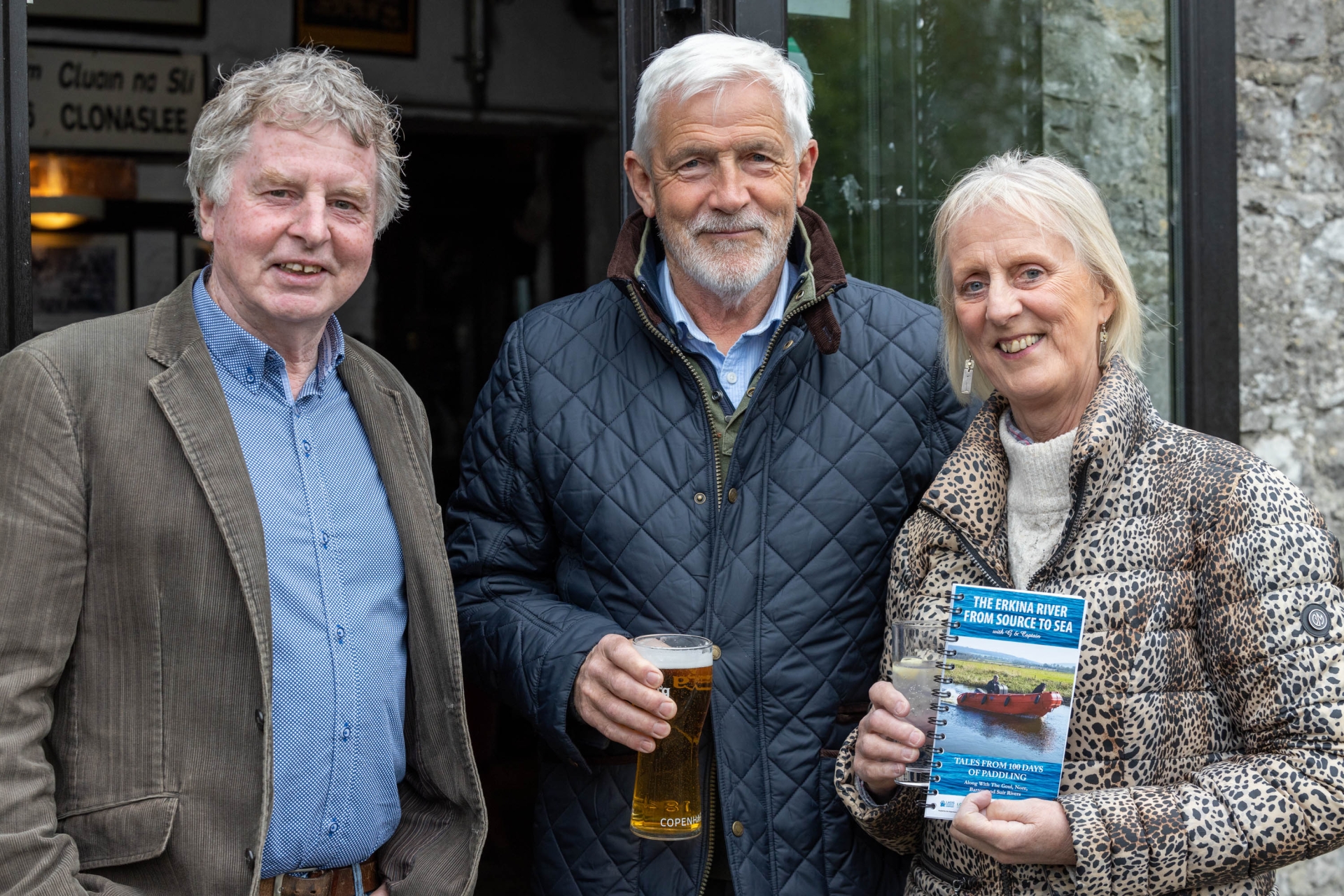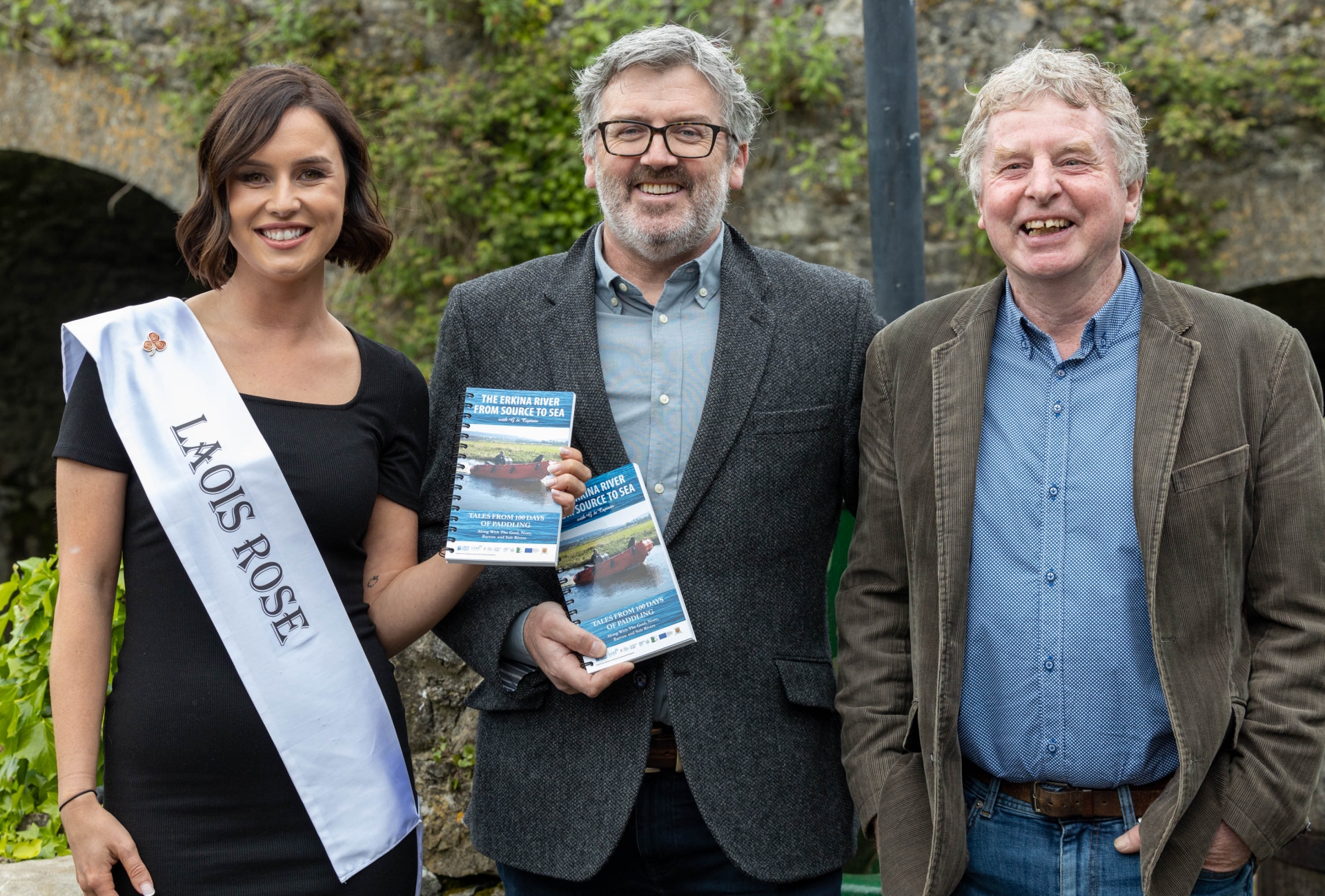 Laois Rose Sinead Dowd, RTÉ sports reporter Justin Treacy joined author Michael G Phelan at the launch of his new book The Erkina River From Source To Sea by Michael G Phelan at Bob’s Bar, Durrow.