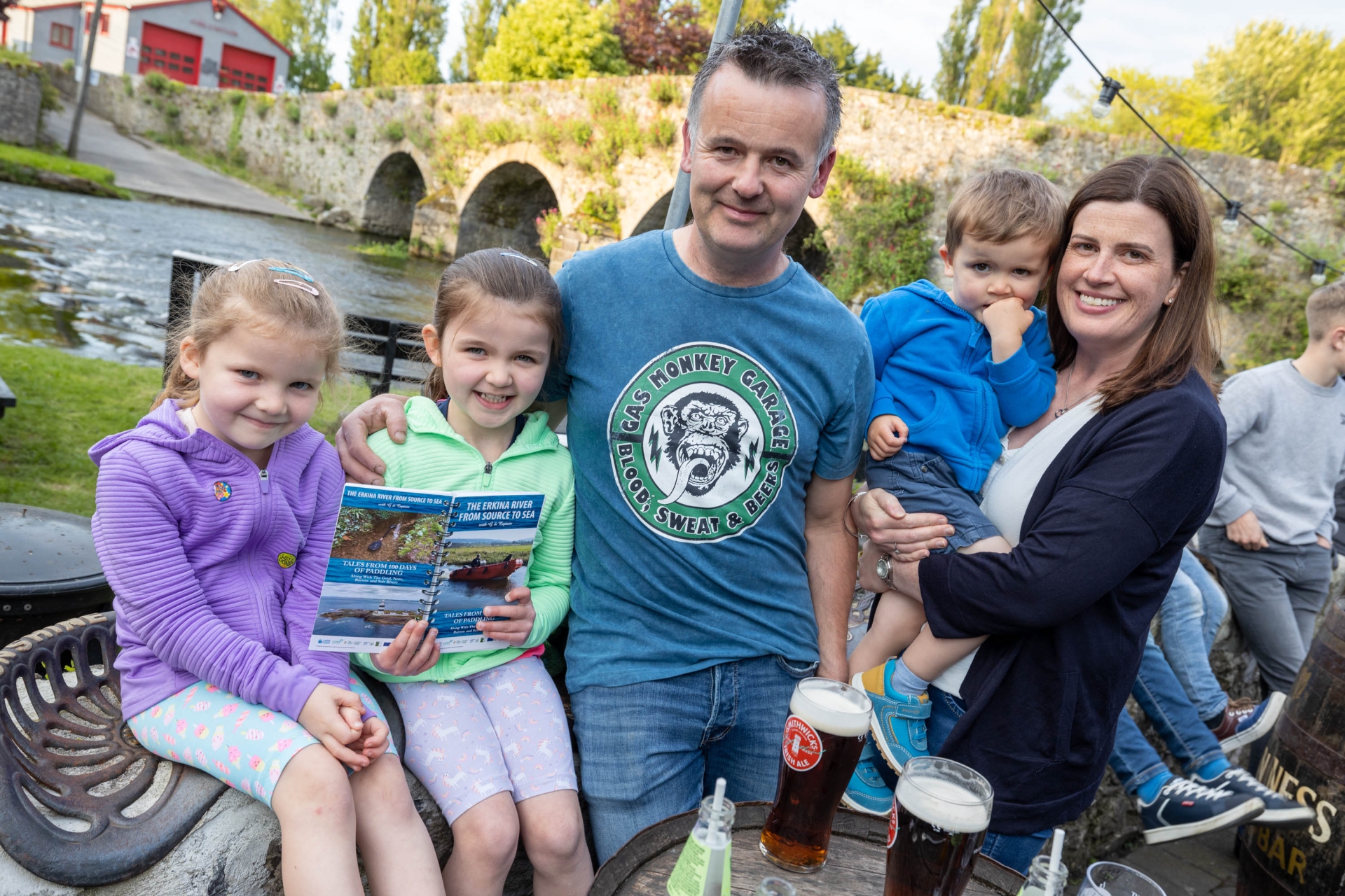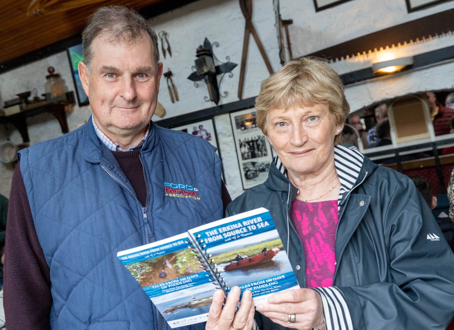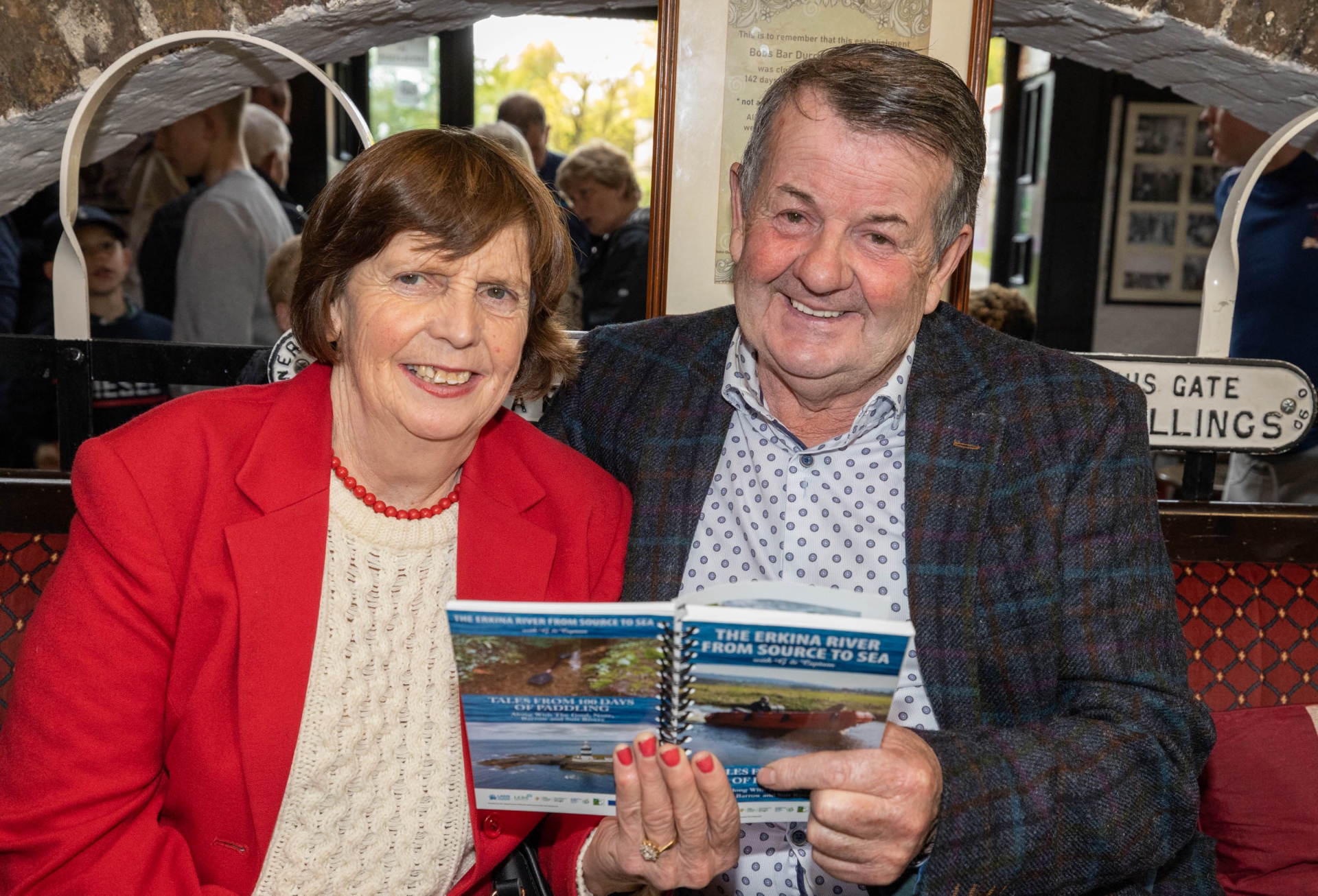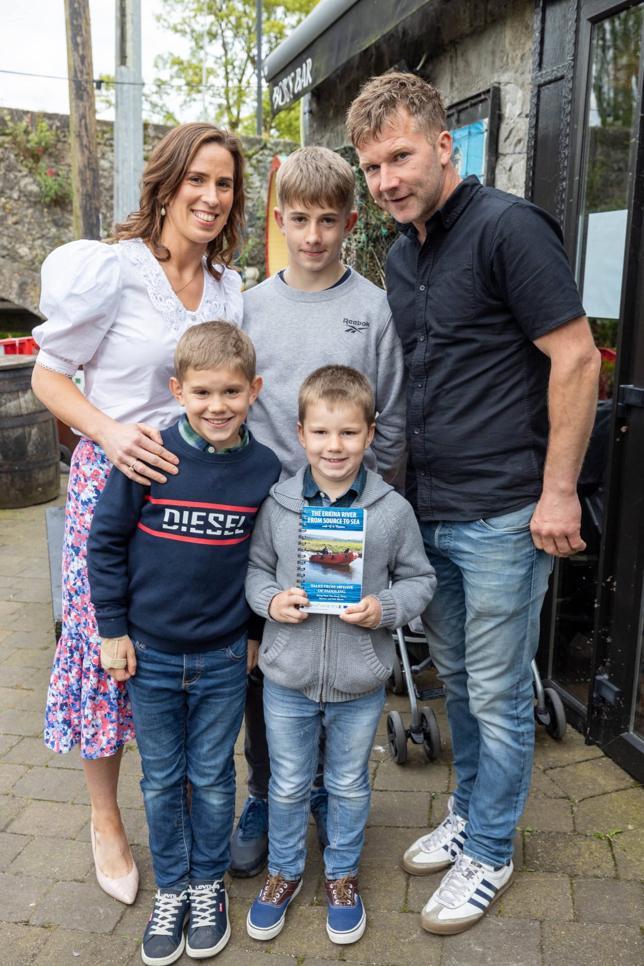 Laois Rose Sinead Dowd, RTÉ sports reporter Justin Treacy joined author Michael G Phelan at the launch of his new book The Erkina River From Source To Sea by Michael G Phelan at Bob’s Bar, Durrow.