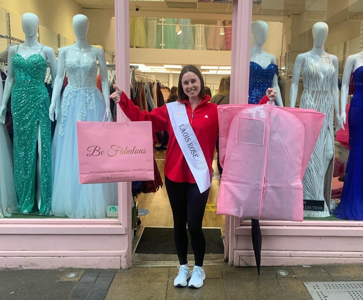 Below: Laois Rose Sinead Dowd after picking up her stage interview dress. Photo: Laois Rose Centre