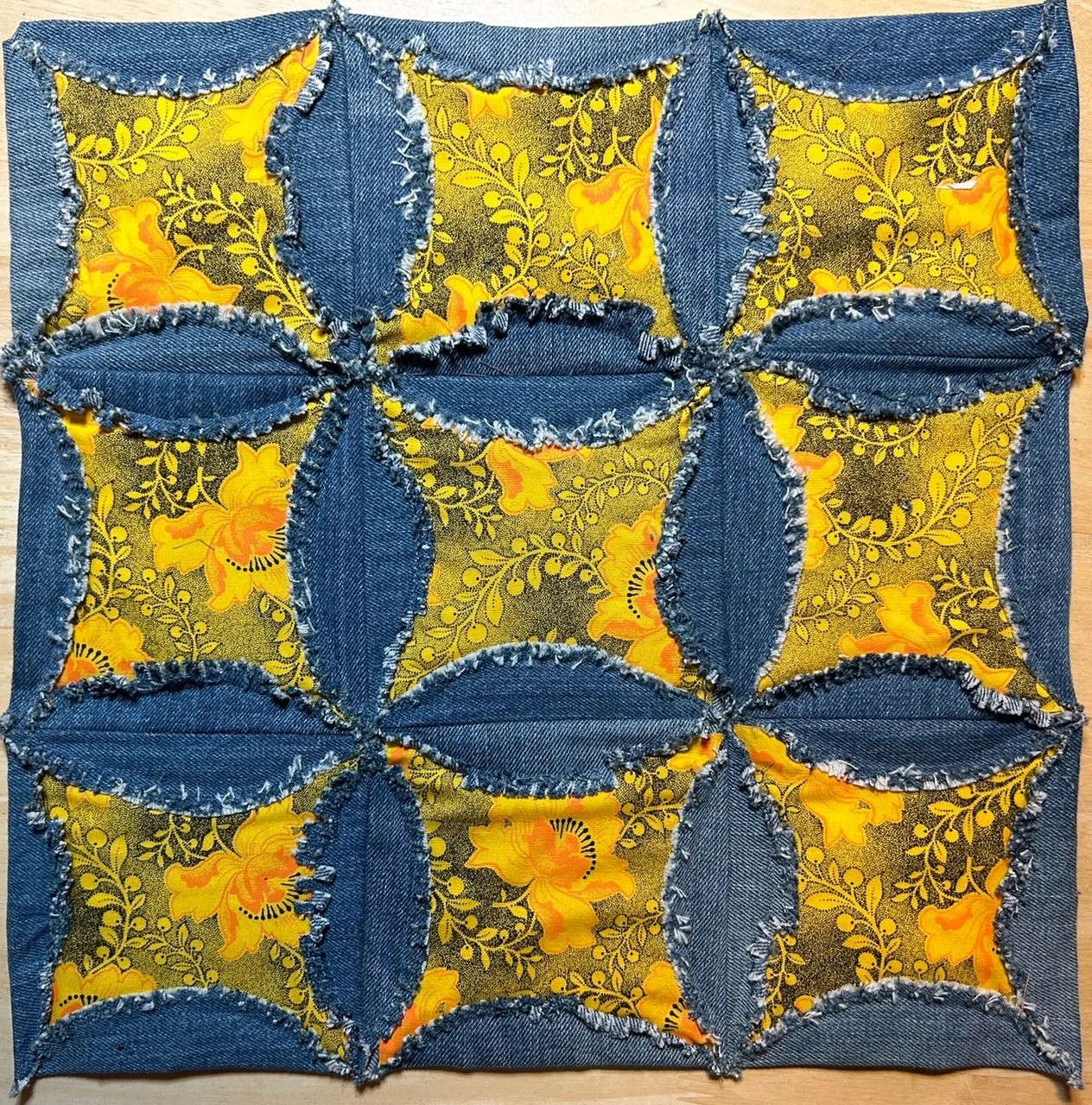A quilt made from upcycled denim.