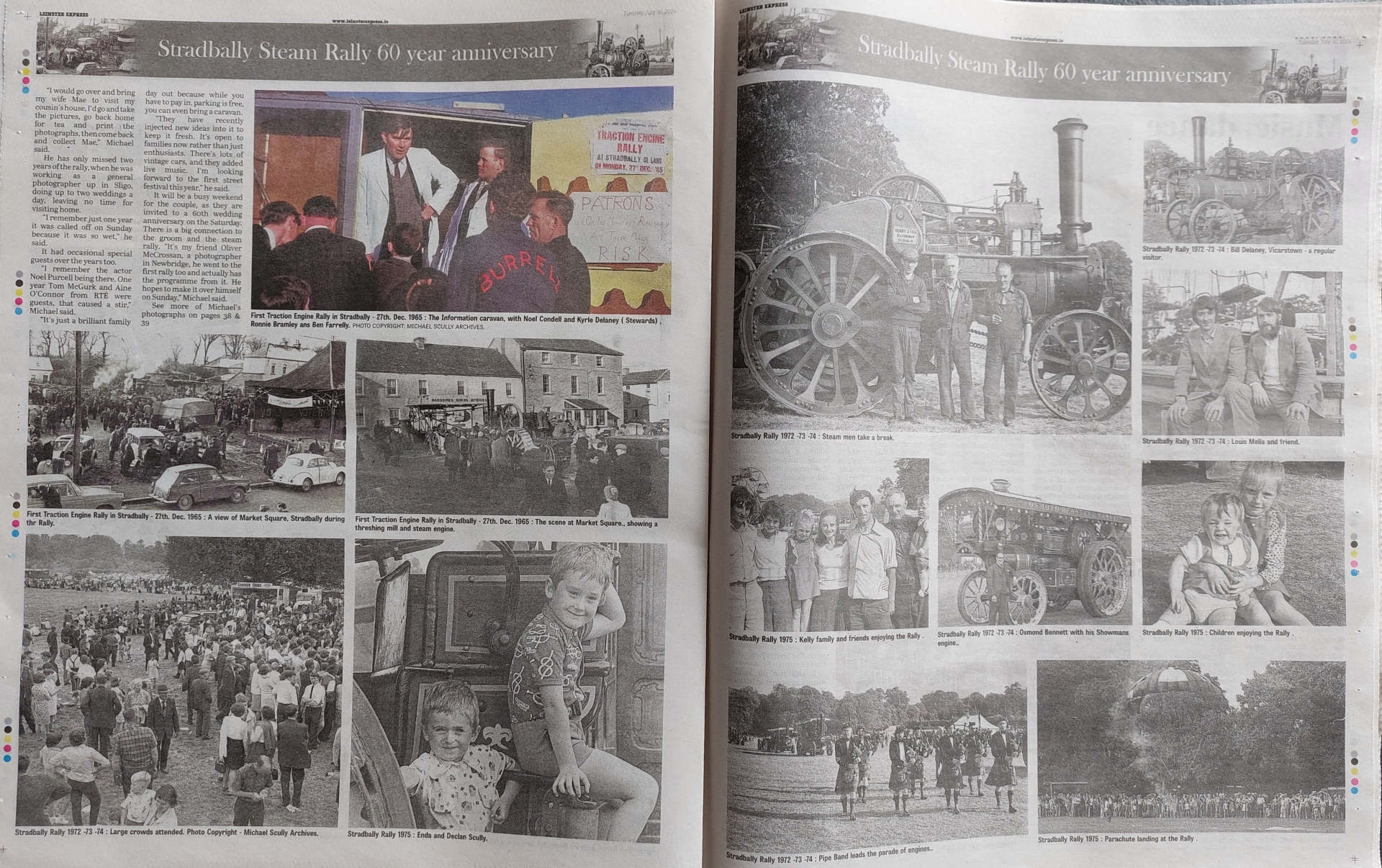 The current Leinster Express with pages of historic Stradbally Steam Rally photos, and inset: Michael Scully photographer.