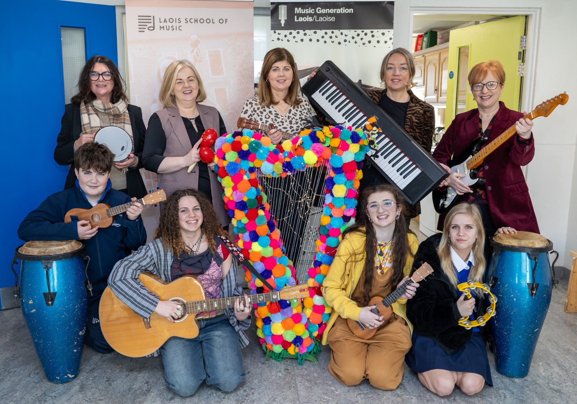 Music Generation Laois and Laois School of Music students, James O’Connor, Eva May Fingleton, Moya Keating and Goda Liutkeviciute; Patricia Wallis, LOETB Local Creative Youth Partnership (LCYP); Lind