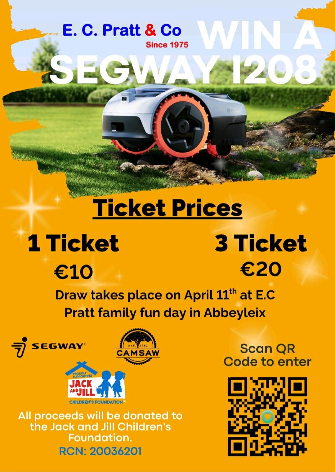 "Camsaw distributors in Portarlington have given us a fantastic robot to raffle, and Segway on the Abbeyleix road are helping too. There will be a load of special deals on our robots, and 5% of the cost goes directly to Jack and Jill.