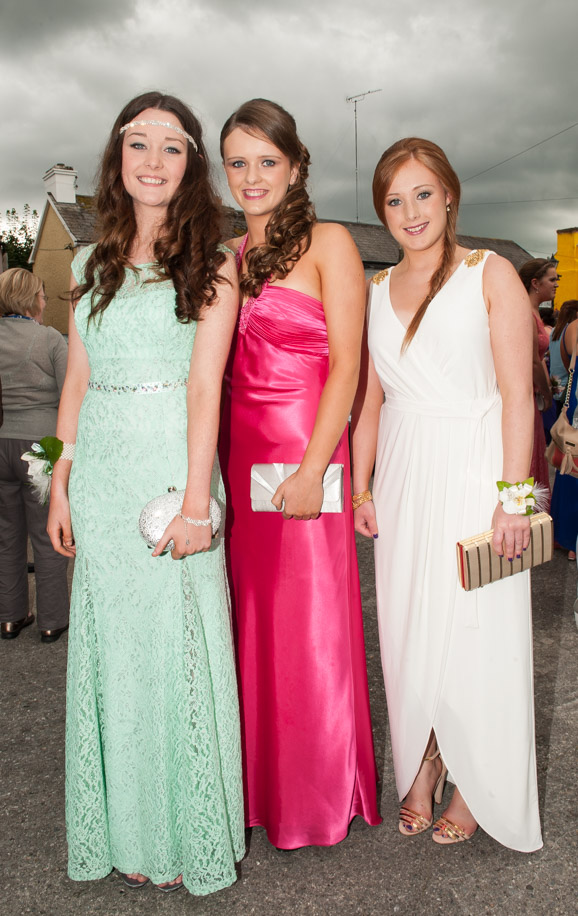Below: Gráinne Good (left) at the Clonaslee College Debs in 2014, with Rachel Stephenson and Niamh O'Riordan. Photo Denis Byrne.