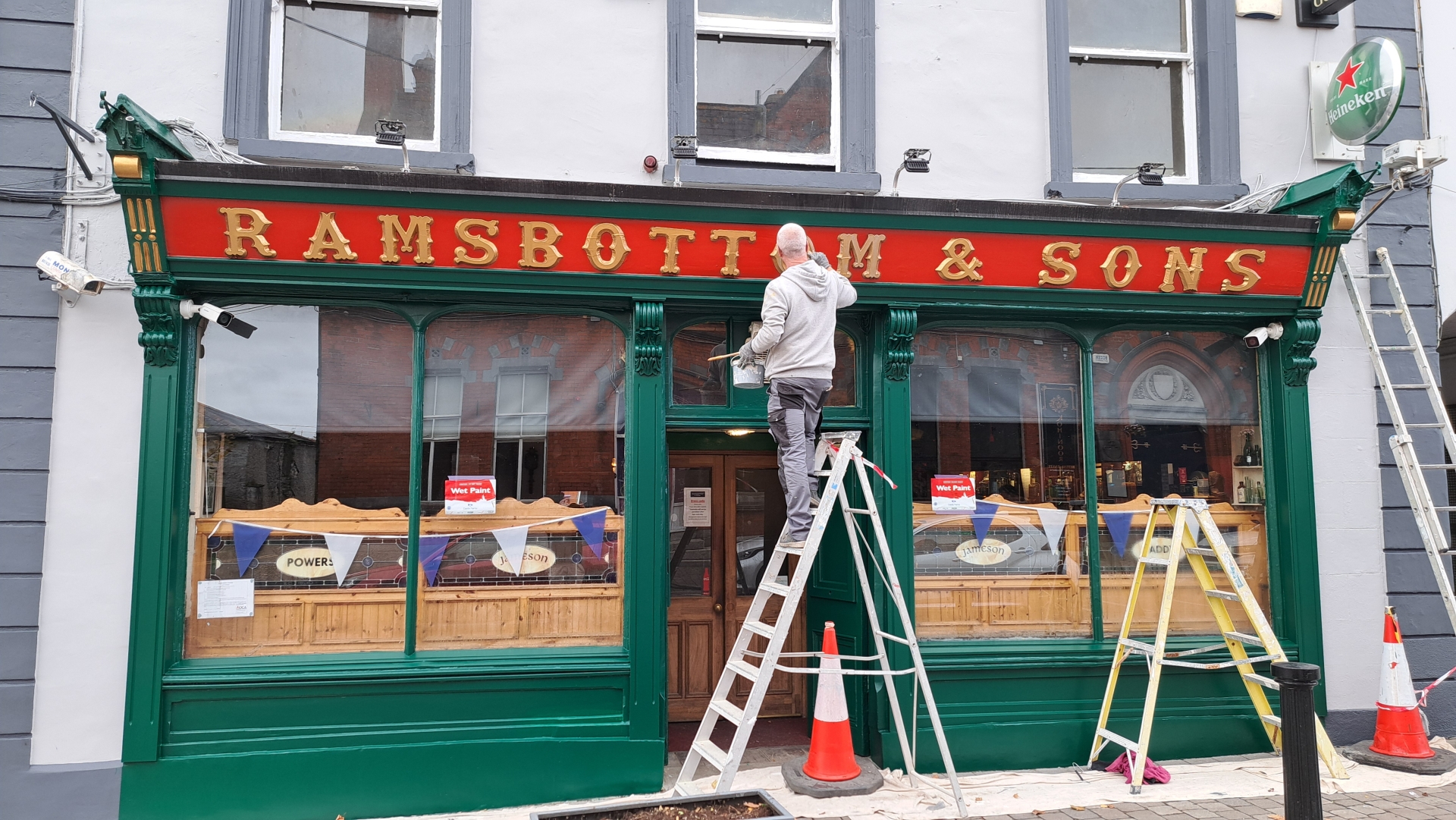 Painters have put the final touches on a painstaking restoration and redecoration of the famous Ramsbottom and Sons pub in the heart of Portlaoise.