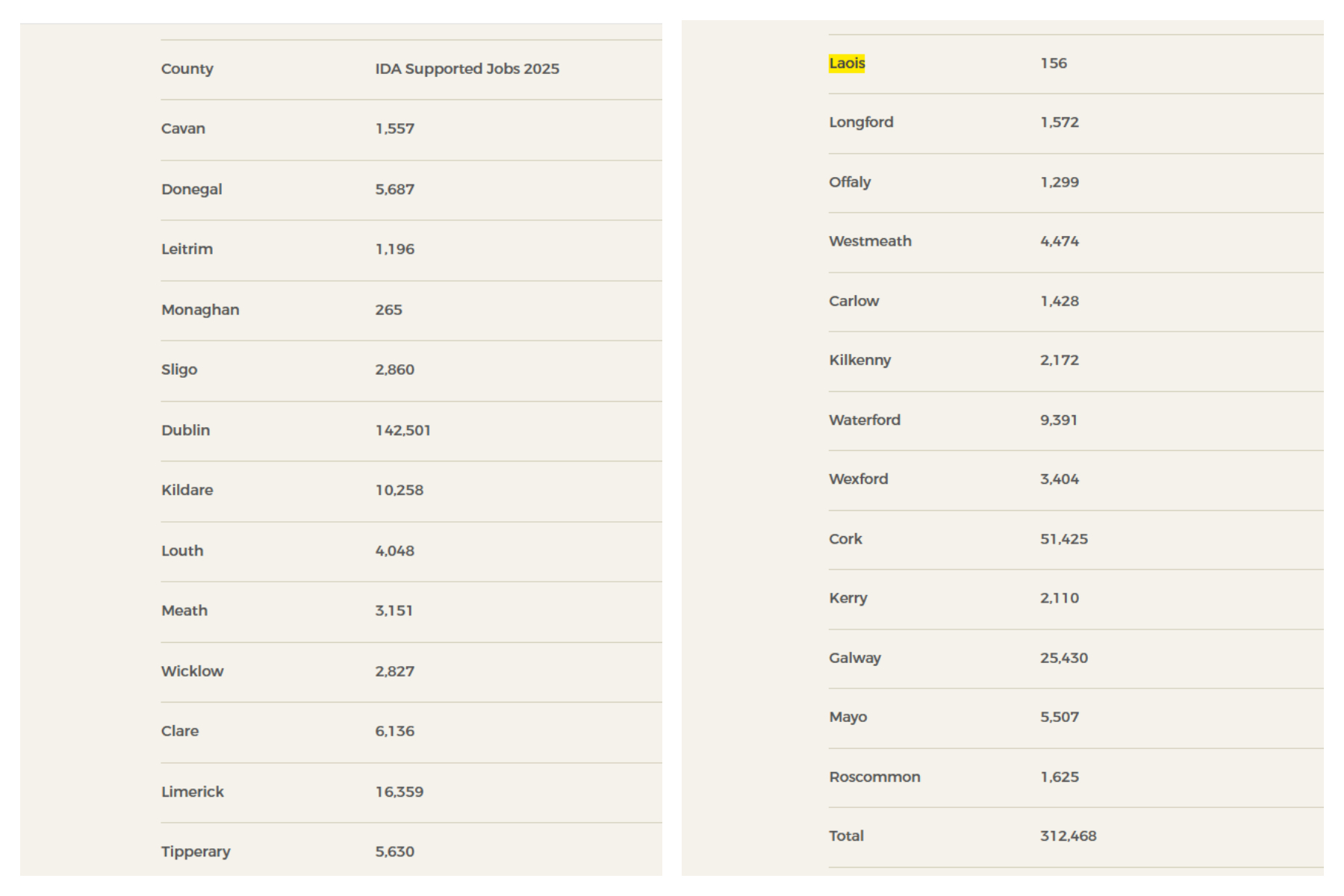 READ ALSO: Laois had least IDA backed jobs at the end of 2023
