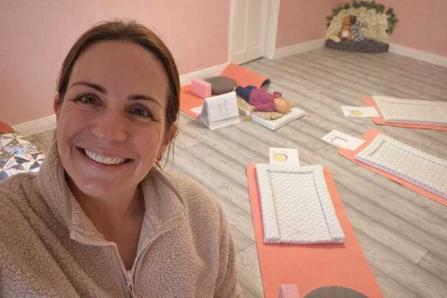 Helen O'Brien pictured with her infant massage setup.
