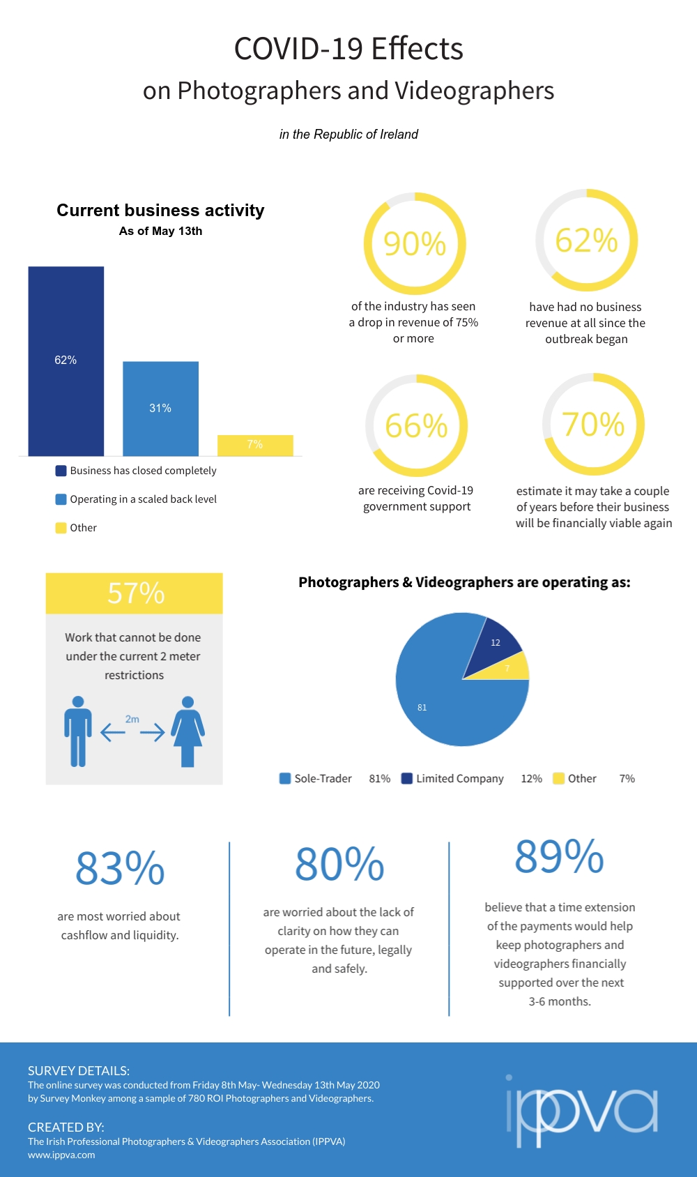 In a survey conducted by the Irish Photographers and Videographers Association (IPPVA), 780 professionals across the sector outlined their main concerns and worries as the first of five phases of recovery came into effect.