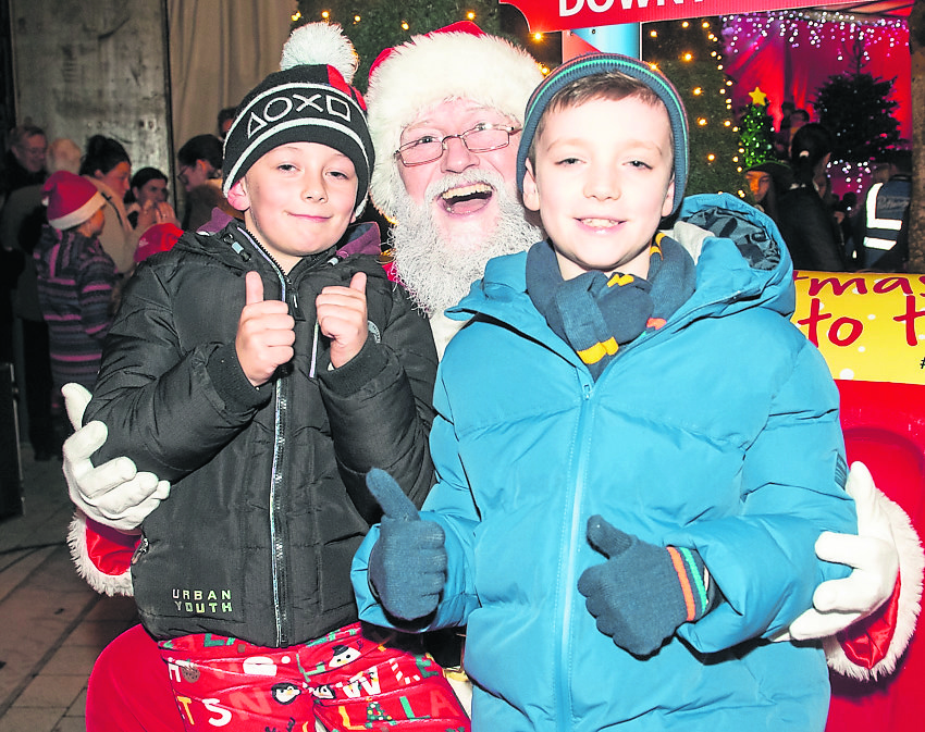 Malachy McNulty and Robert Bowe with Santa at the switch-on in 2023.