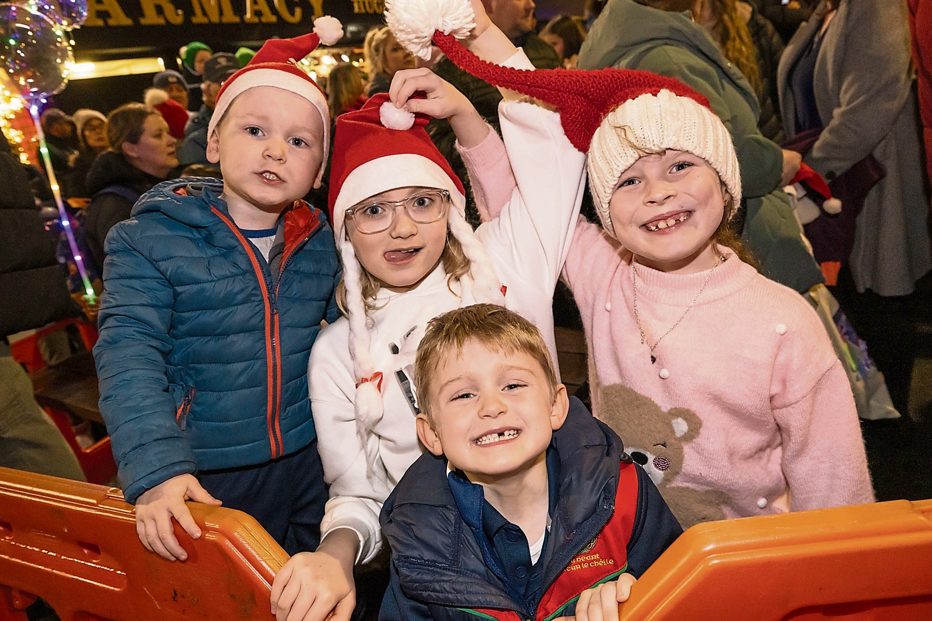 Barry, Emily and James Kelly with Síomha Nelson-Heffernan at the Portlaoise Christmas lights event in 2024. Photo: Alf Harvey.