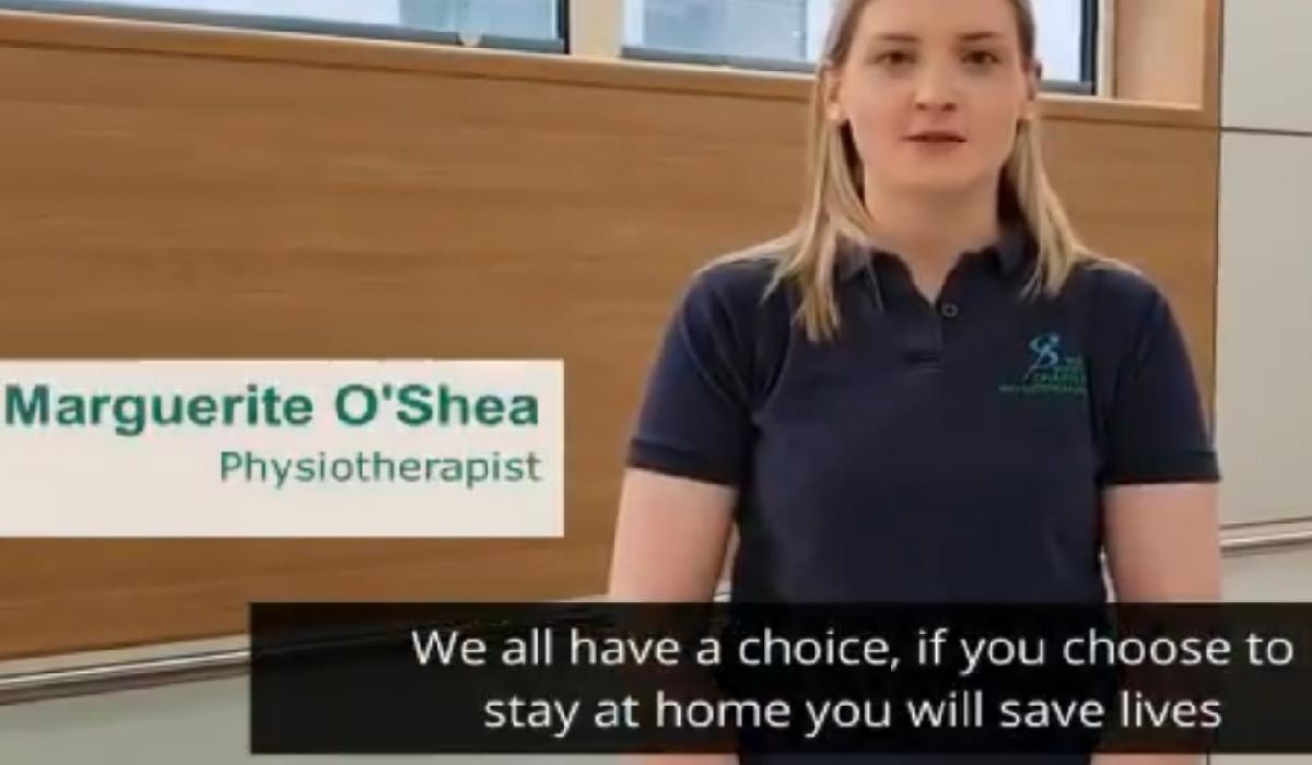 Physiotherapist Marguerite O'Shea said everybody can make big difference: "We all have a choice. If you chose to stay at home you will save lives. We all know now that the big nights out and the big nights in are cancelled for now".