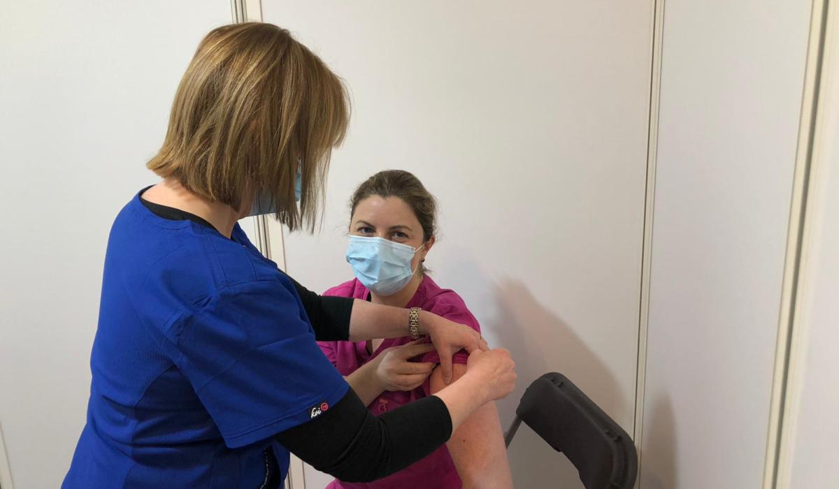 Laois GP Dr Michelle Byrne was vaccinated at a mass vaccination clinic she helped run in Portlaosie at the Killeshin Hotel