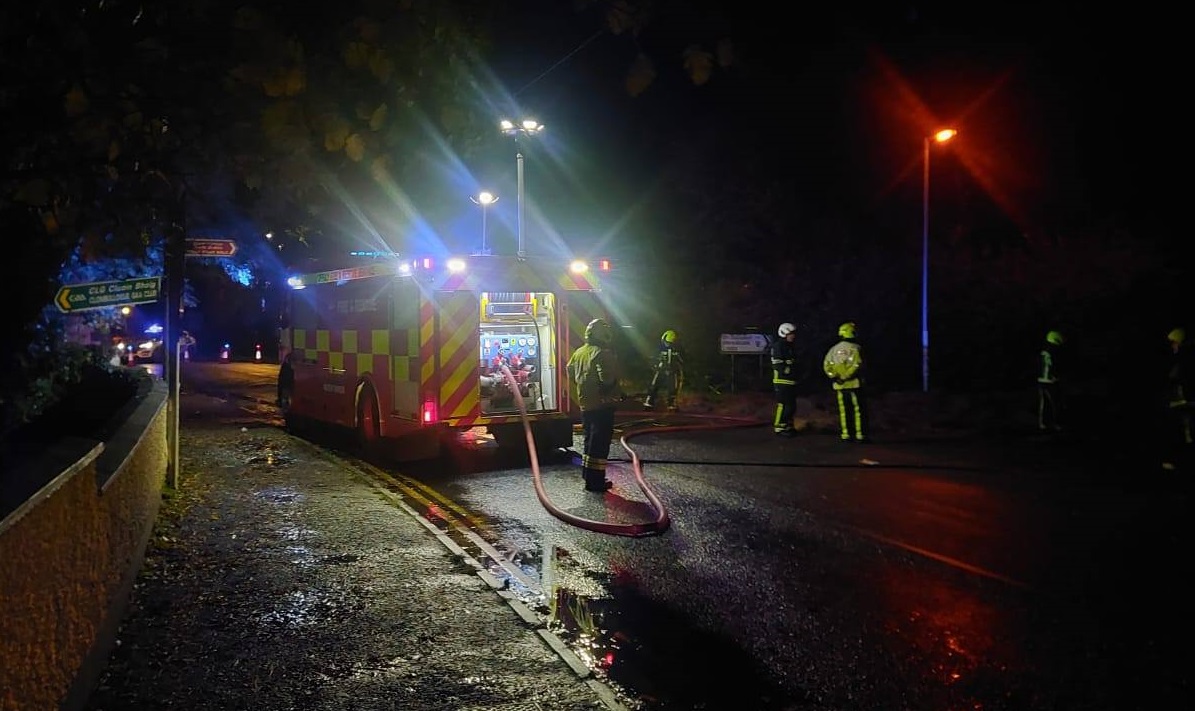 A fire crew called out in Clonbullogue on Halloween night, photographed by Laois Offaly Garda Division.