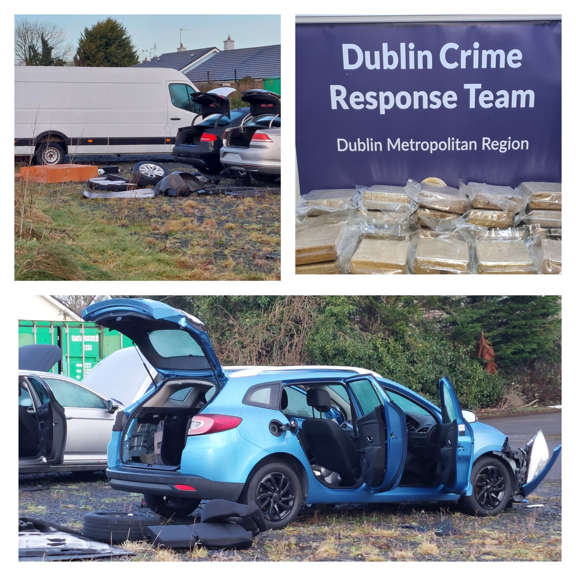 The operation, conducted by Gardaí from the Dublin Crime Response Team, resulted in the seizure of 182kgs of cocaine and 4kgs of cannabis herb valued at €12.8 million in Mountmellick and further drugs were found in Dublin bringing the value up to €14.01 million. In all the operation resulted in the seizure of 199kgs of cocaine, four kilograms of cannabis and cash.