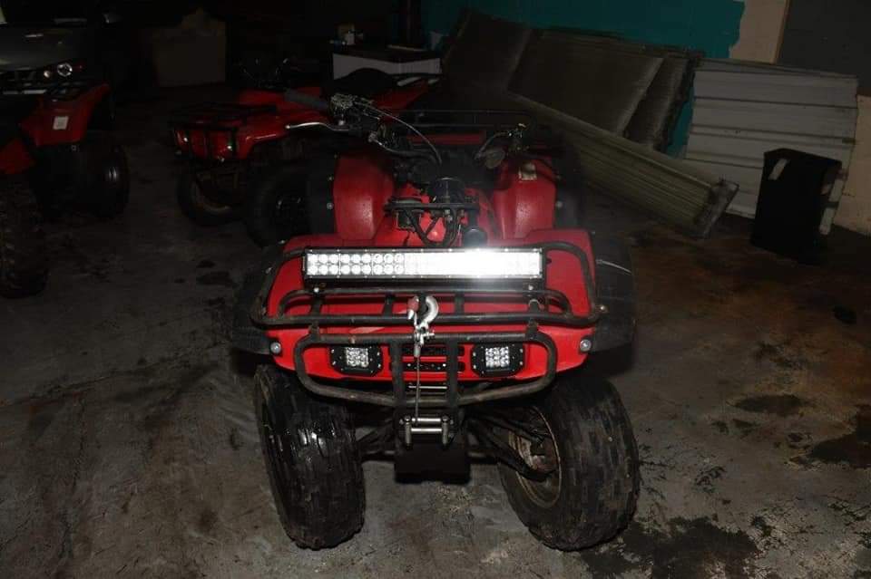 The property includes two Honda quads and one Suzuki quad. A Munich sool set was also recovered. Some property has serial numbers.