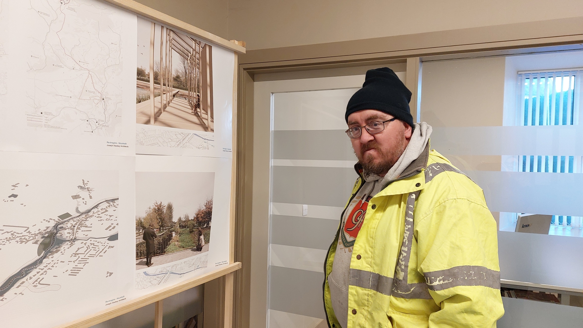Michael Osborne viewing the Reimagine Mountrath plans.