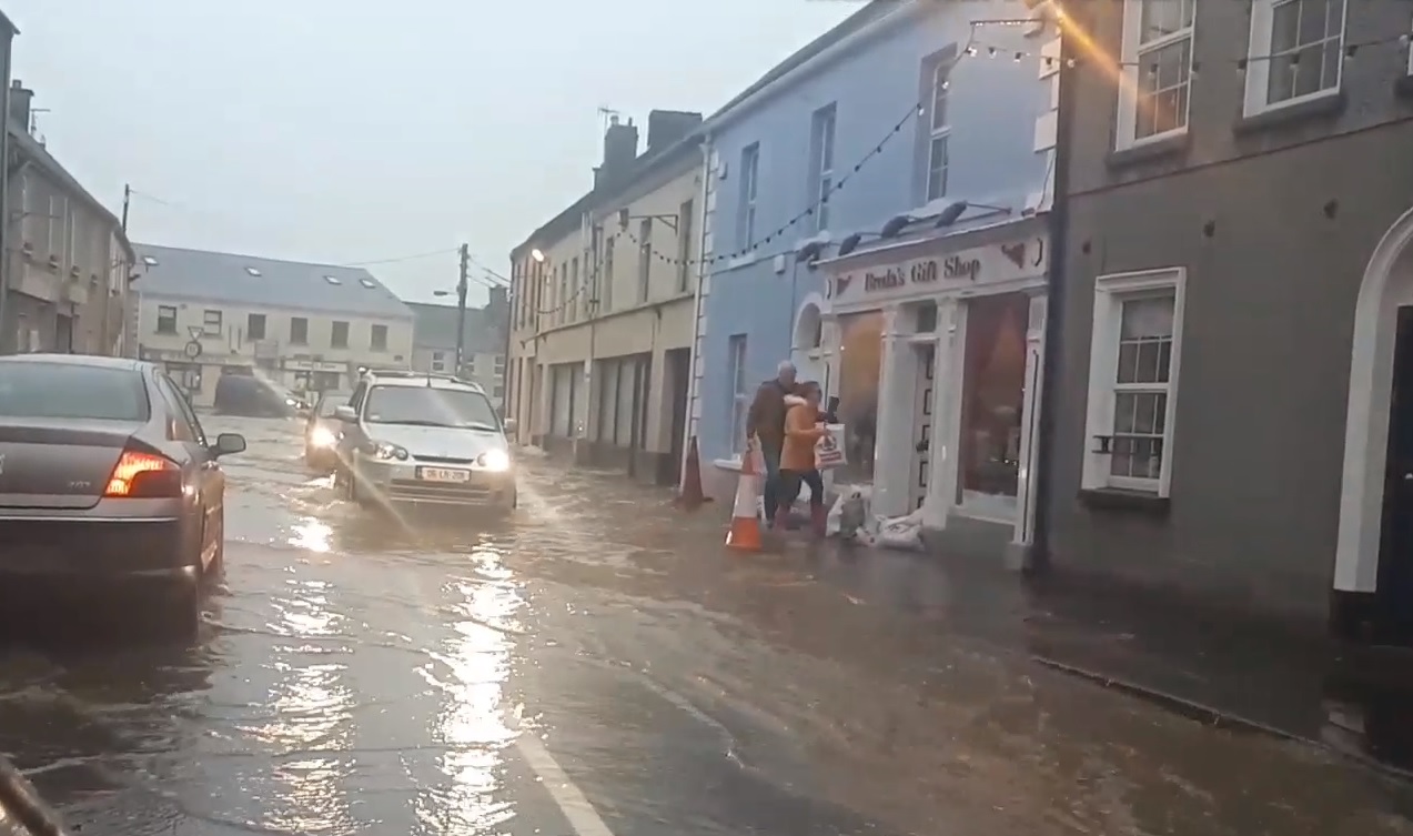 Below: the November 2017 flood on Main Street, Mountmellick. Image: Leinster Express.